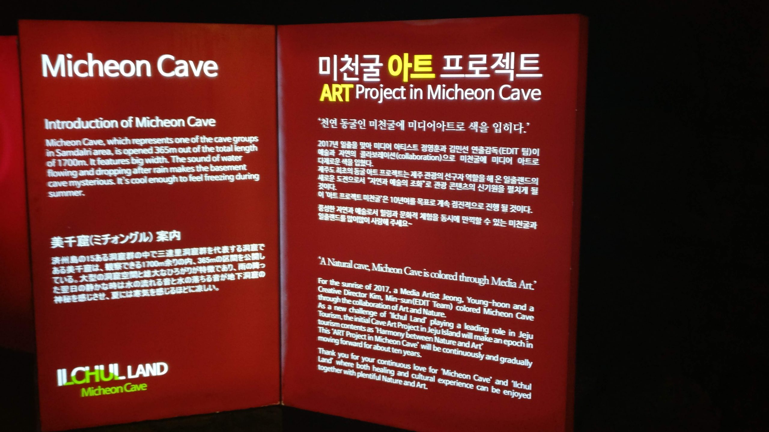 One of my treats for the month was getting to pup-sit a rescue named Honey for a woman I met at volleyball and her fiance. Another was stumbling upon some cool stuff at a bus transfer on my way to a hike in the forest and deciding to go with it. Checking out some horses, I then found a tiny joint for my first hamburger on the island that I got to enjoy`with a sweet furry friend. After that, I found Ilchul Land. An “ecological and cultural attraction” that had a cave to cool off in with an awesome art installation inside it. It was easily one of my highlights on the island to that point. sentimental fool that I was, I admit to having even teared up a bit.