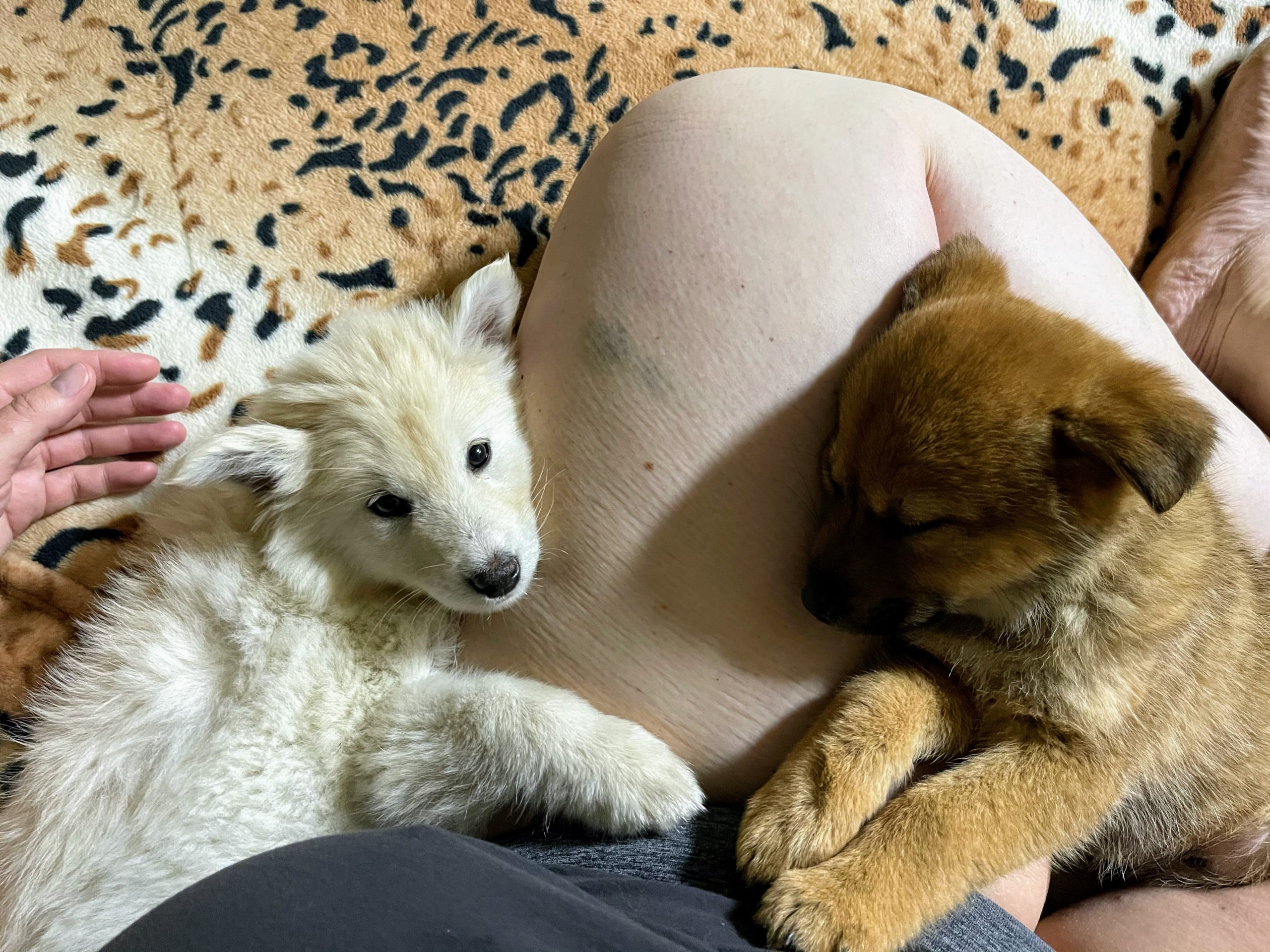 Then there was the other parts of rescue that added plenty to make it a full-time labor of love. Vet visits, constantly on the hunt for all different kinds of volunteers, forever cleaning, managing all the different people involved, puppy destruction (my Rainbow flip flops being the biggest bummer of the month) and oh so much more. Besides the direct puppy love, though, there were also other great moments that kept me going through it all. One way being updates from adopters. That month I got one from the new daddy of what may have been my shortest foster pup when he shared picts and video of her having a blast in her new life in Busan. There was also an exciting update about Saja. He was the doggo I had personally rescued from behind the building of my old place and was proving to be doing better and better at learning what it was like to live a different life from being tied up on three foot chain and forgot about outside.