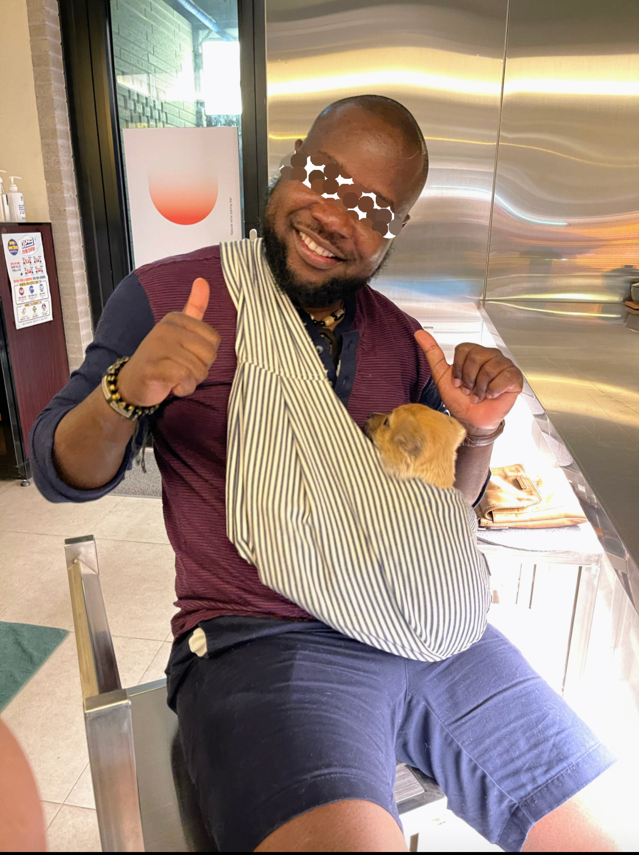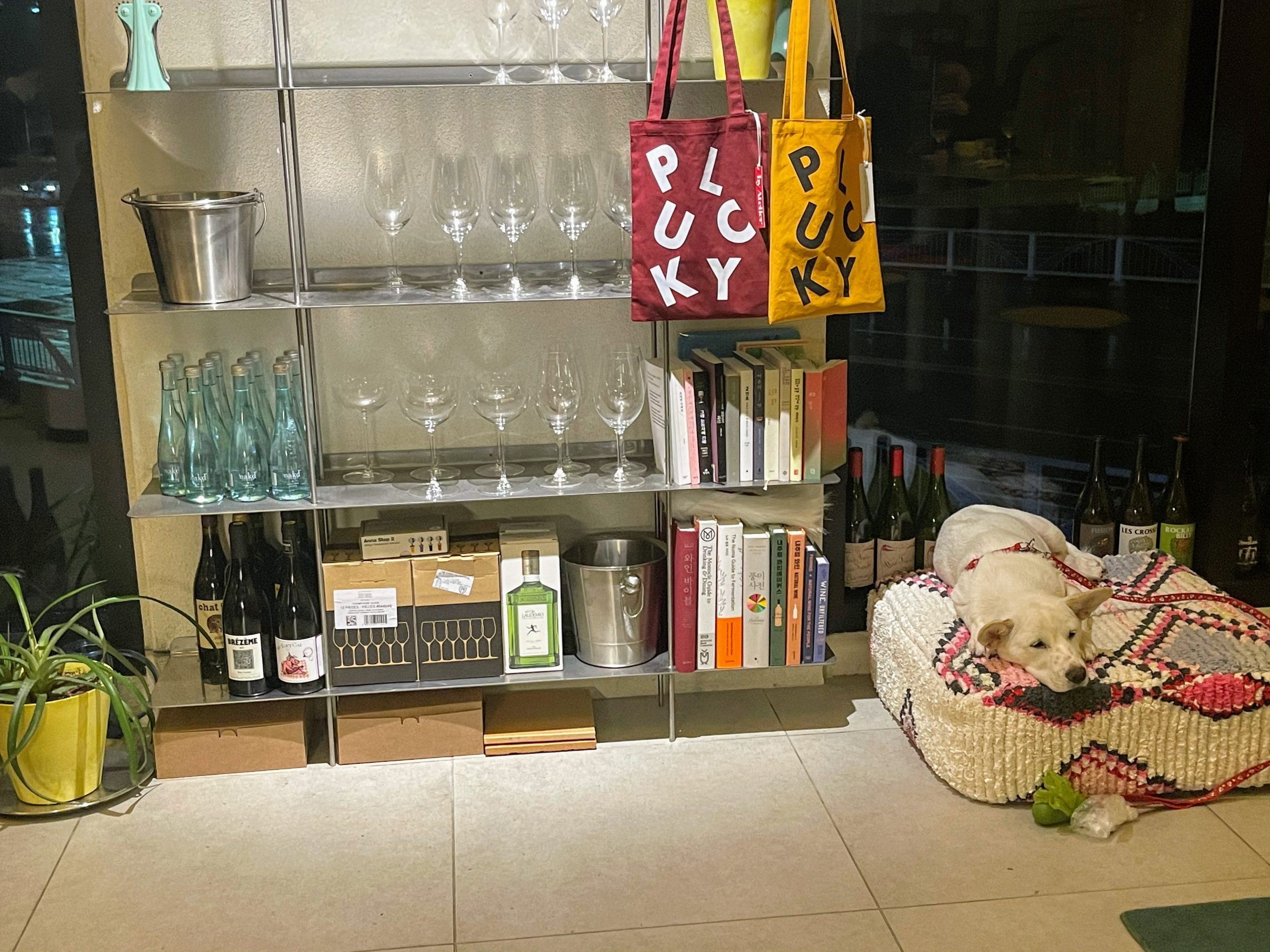 Regardless of all that, we still managed the day after our first night together to have a lovely and long meal at Korean BBQ spot where we drank plenty more somaek and then at the wine spot across from my apartment where my newest foster, Pebble, was dropped off. He even took the lead to hold her in a doggie shoulder bag most of the time.