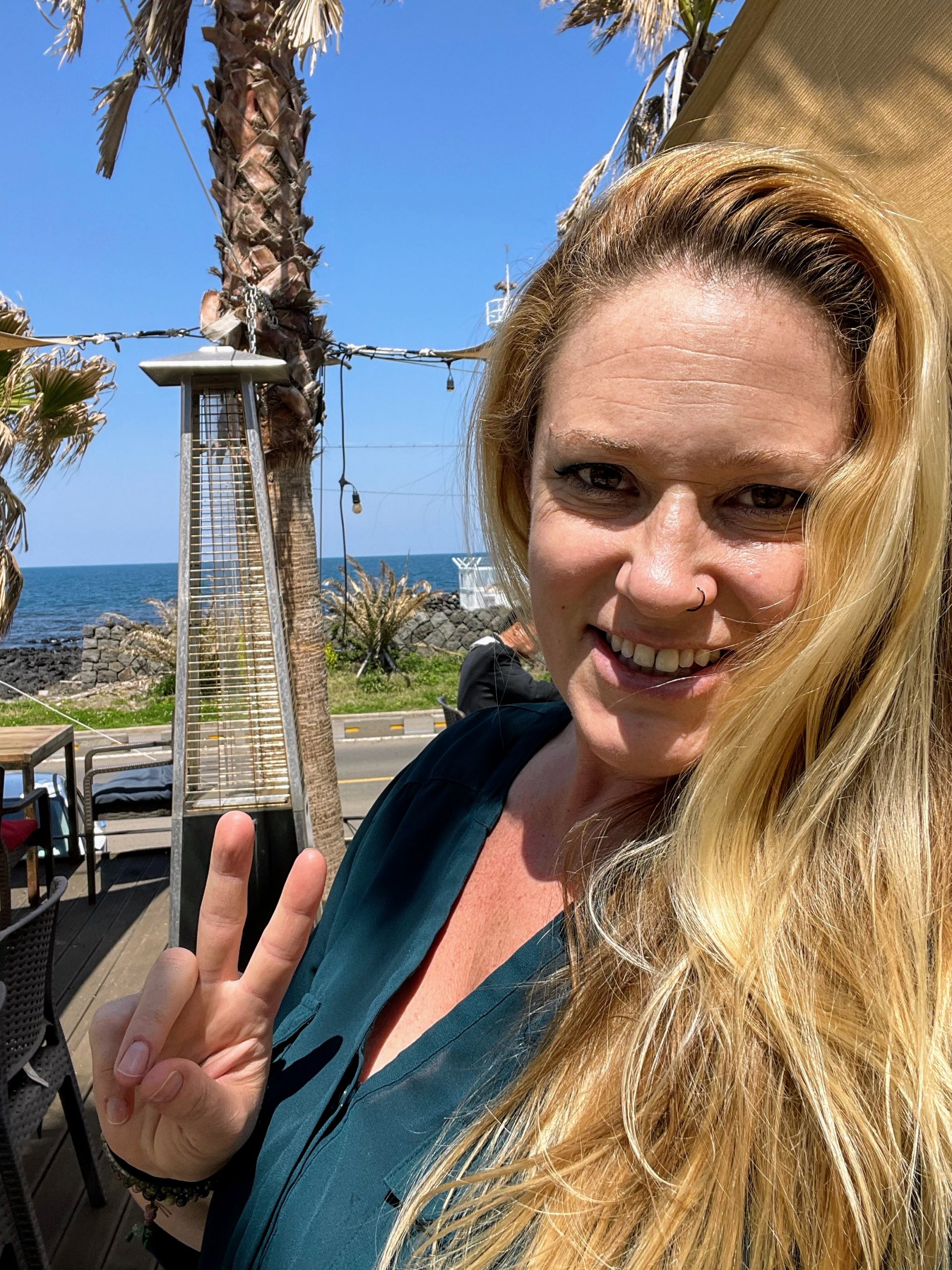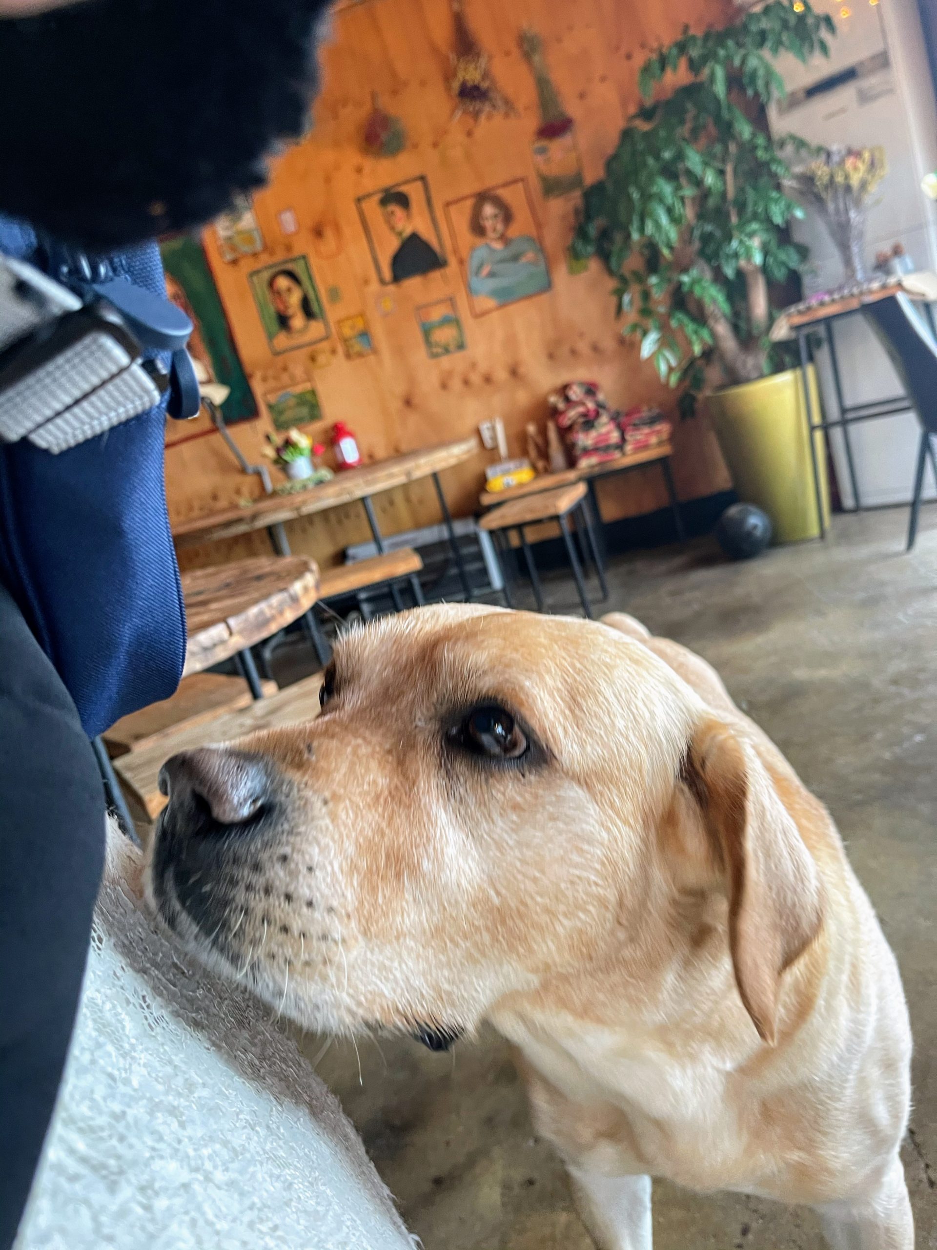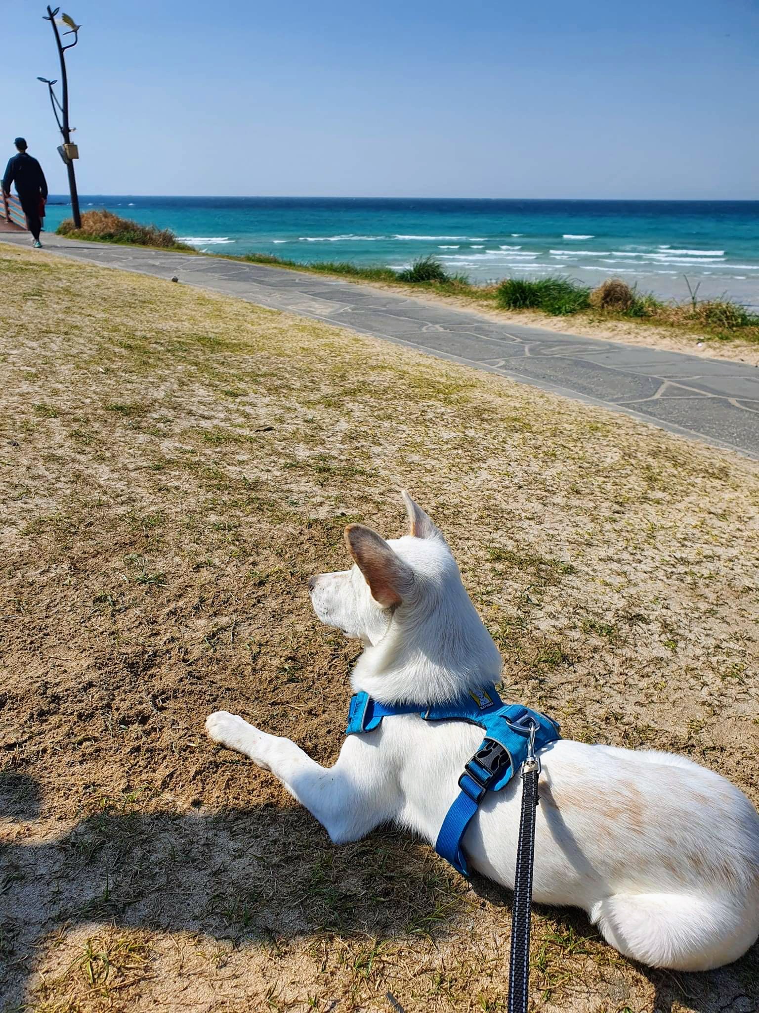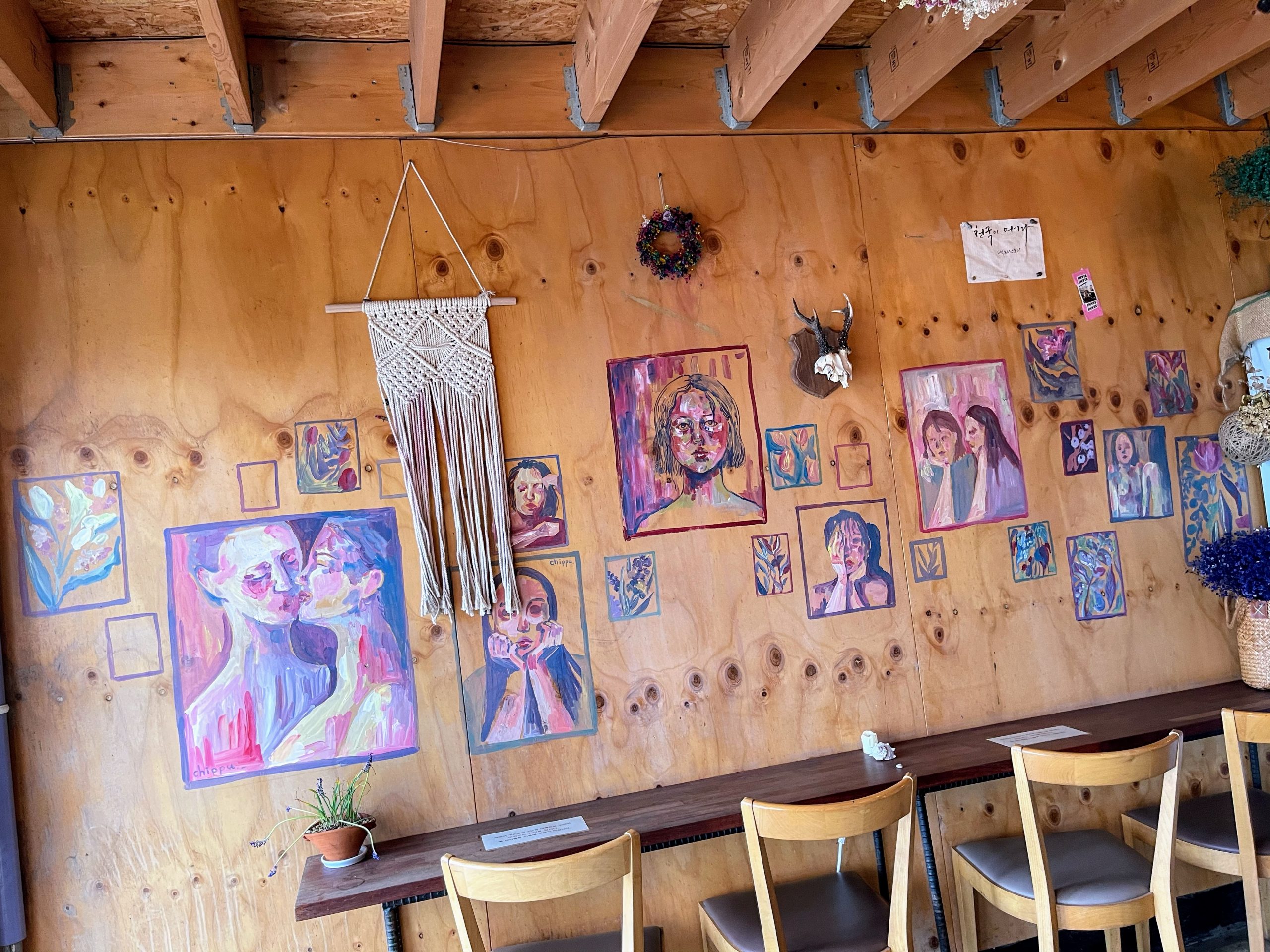 Besides restaurants taking up my time (because, duh, food), there were cafes. It had been shocking when first getting to S Korea how there were even more everywhere than in the US. It was also one way the culture and I finally fit. Well, minus the modern look of so many of them, having so little non-pastry food options and the fact that they often didn’t open until 10 or 11 AM. Who of us that are addicted can wait that long for our caffeine!? Of all the tons of them I visited, one of my favorites remained to be a coastal cafe in an area known as Aewol that was warm, full of art and had a surfer instructor (the owner’s son?) running in and out from giving lessons right outside. It even had a slightly run down boho vibe that I absolutely adored. Doubling down with why it was so great: it was dog-friendly. When a new hiking friend and I went together, it made for one lovely April afternoon.
