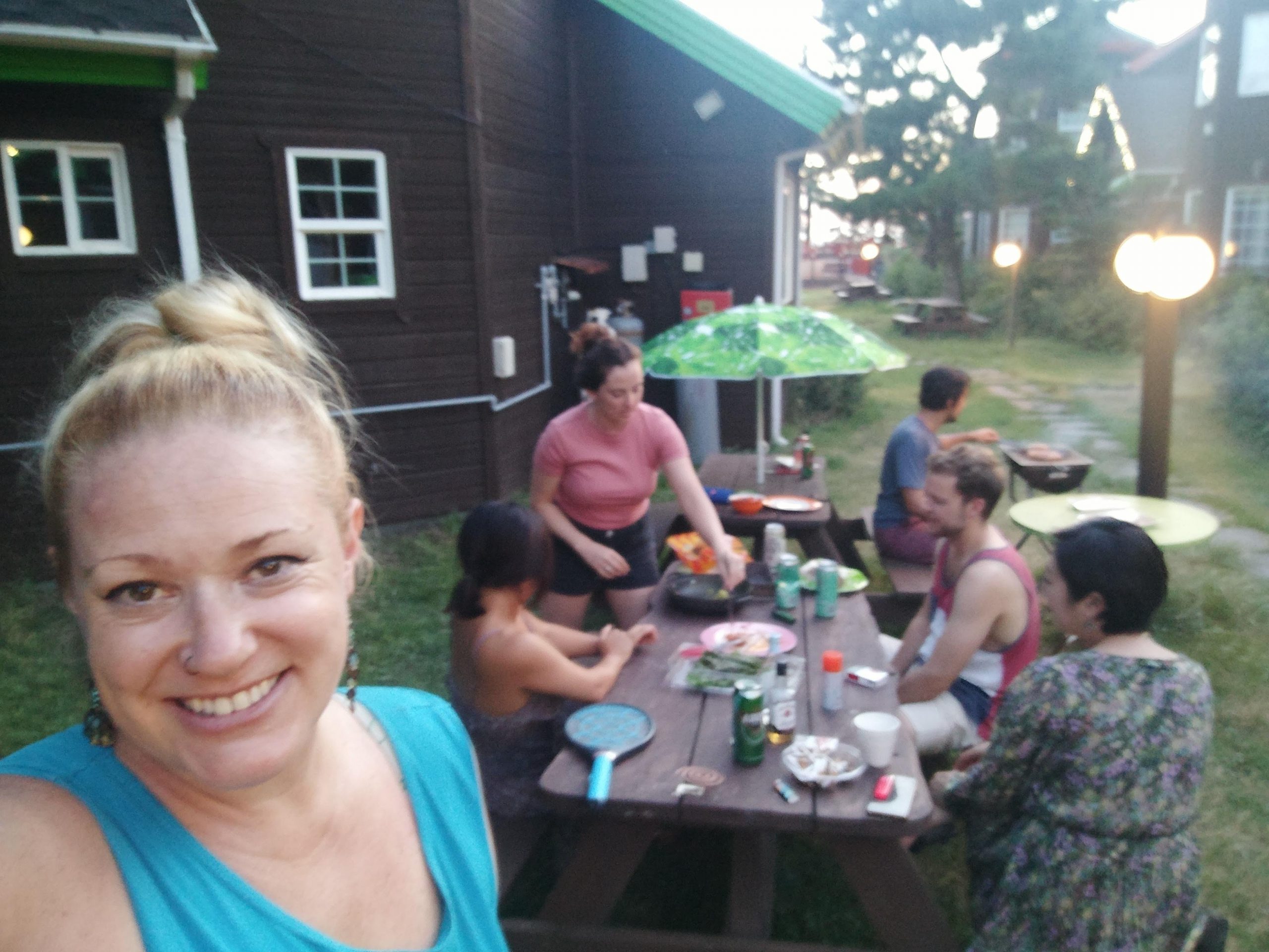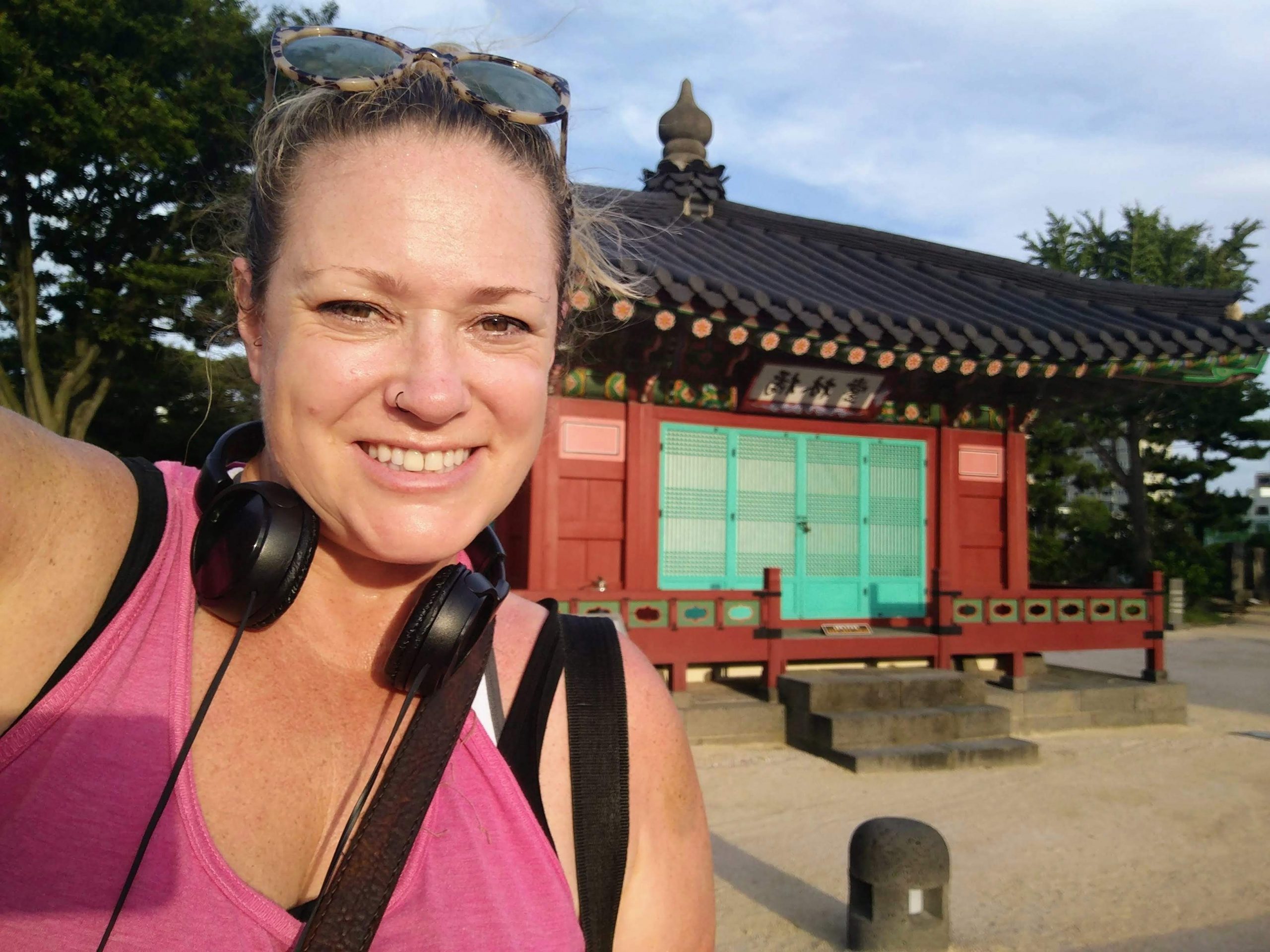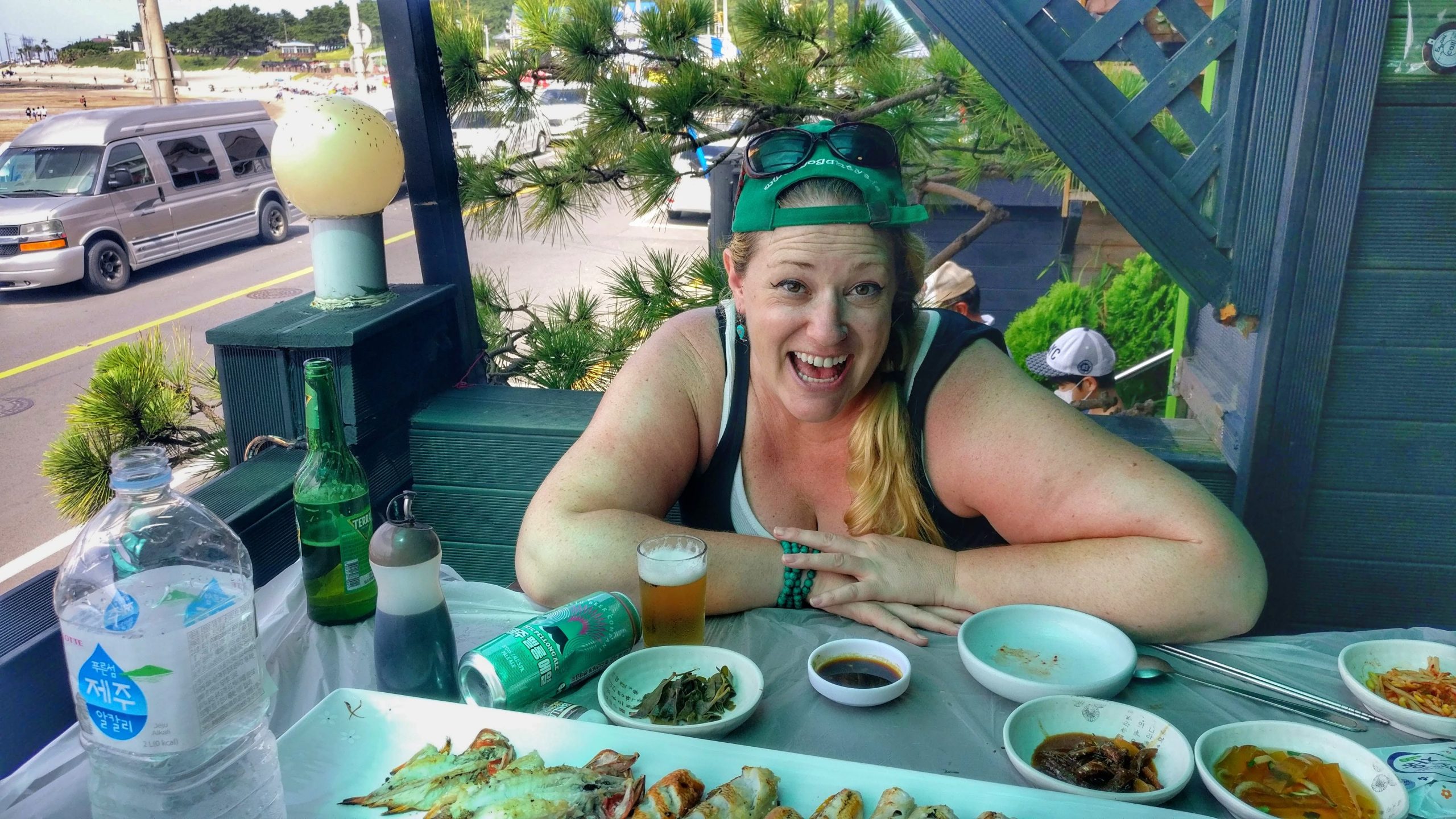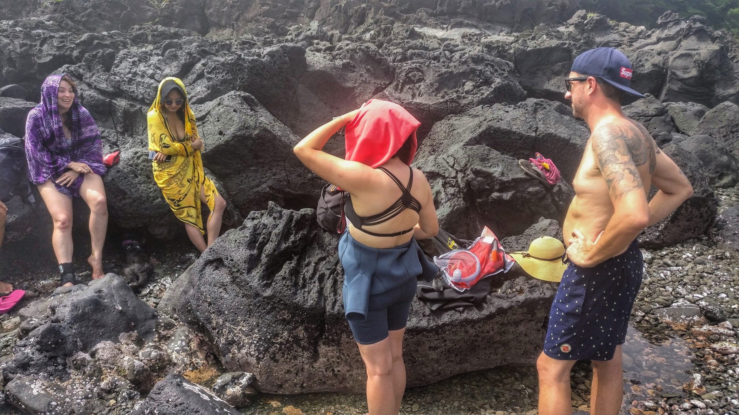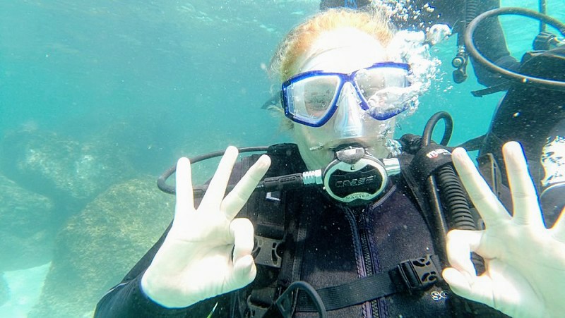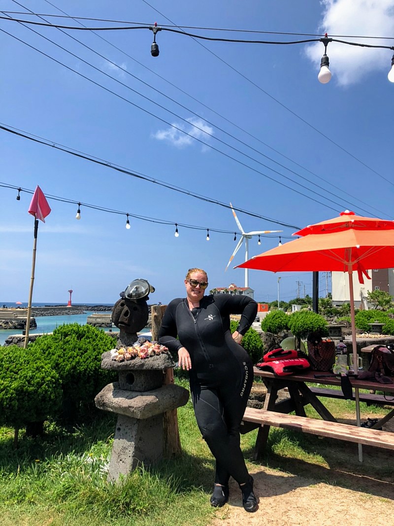 The next day was water-bound again when I went snorkeling with Gaelan and friends. Climbing the volcanic rock like sand crabs to get out to the water, the tide was rough enough to scare me back in almost immediately. All said and done, I left with only one or two wee cuts. A feat for my clumsy ass. Venturing on, we went to Thai food, of course made me miss it over there, then just four of us continued onto a beautiful lagoon that was so ice-cold that fog layered the top. The hike down was too steep for me to make it for a polar dip but I at least got to watch. There were spas in S Korea called jjimjilbangs that had heated and iced pools, a wooden area to lie down and some other nice additions here and there. Well, when Gaelan and I made it to one and I insisted on getting a massage, I didn’t exactly get the result I was looking for. Big mistake, actually. Forever to be teased by her for feeling bad about having an older lady do hard work, said woman was about to kick my ass. It also become apparent somewhat quickly that she had no real training. The whole thing was horrible but I felt too awkward to say anything, of course. Also a big mistake, I hadn’t thought about how my platelets being low could play a role but was reminded when parts of me were covered in gnarly bruises a few days later. The things that had become part of regular life were still truckin. Finding decent wine and cheese, happily watching Honey again, writing, being bullied by Mun*** and more importantly, enjoying all my students. Two of the girls even wrote my name in Hangul, not that I’d ever remember it. My biggest accomplishment for the month was getting an Olle passport. It was a little book to collect stamps in from a series of hiking trails and was one of the main goals for my time on the island. That day ended up being a trek in itself considering how long I was lost while making my way around the miserably hot city while looking for the place to get it. I did manage to see some cool sights and make it to one of the cool coffee shops on my list, though. I paid for it by being totally laid out the next day but at least I got to feel like my weekend had been a success over all. There were also the new, or maybe not new but more pronounced, observations and revelations that hit every month. One was that I liked the way the elderly had more of a role in S Korea than back home. Less forgotten, more respect. Then were rougher thoughts about how the extremes of weather wasn’t for sissies, and damn was I a California sissy. I was proud of myself for still getting out to explore but it was getting more and more frustrating to have the first sensation when walking out the door to instantly become way too hot and sweaty. The weekend before summer break, Kathy and I decided to head to the other side of the island to hang with Gaelan, Leo and some friends for an overnight BBQ at a pension (a rental that was pretty similar to an Airbnb). More than that, we were going scuba diving the next day! My poppa had been a big scuba diver until he got sick but I had never joined in because the idea of breathing underwater had freaked me out too much to try it. It hadn’t been freaking me out so much the last couple of years (perhaps because of the seizure meds chilling me out) so I had been determined to do it in his honor. Finally doing it, I indeed didn’t like the breathing underwater part but I could see myself getting used to it if needed. The experience was pretty lame over all though. Hanging at the dive shop with the guys who worked there was fun but we, as seemed to be the norm on the island, first had to climb down a bunch of lava rock with a rope when it was finally time and then the guys taking us under were just going through the motions. There also was next to nothing to see down there. It definitely wasn’t what I had hoped for but at least I had finally done it. I was happy about that. Photo courtesy of Gaelan Whitney