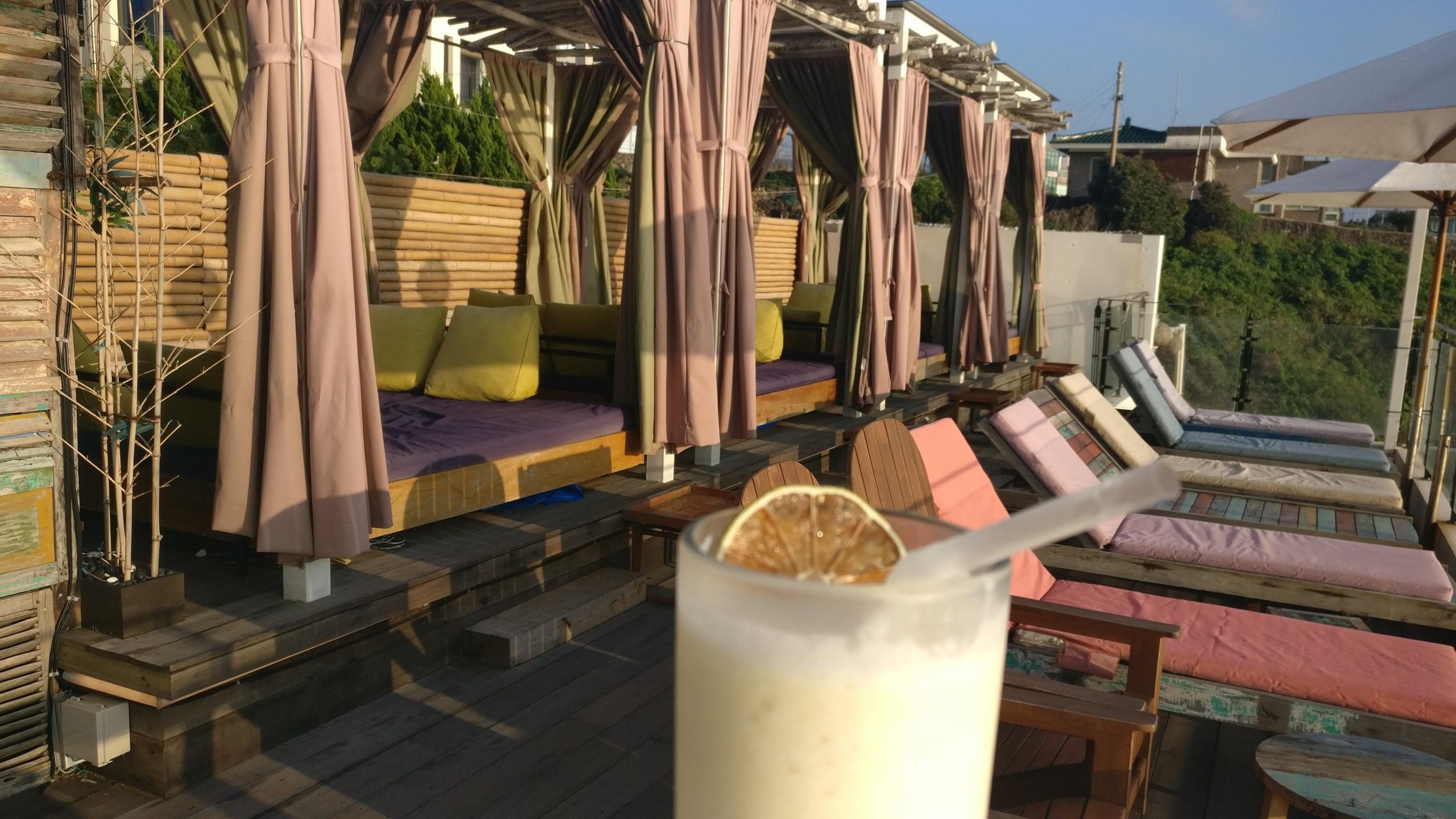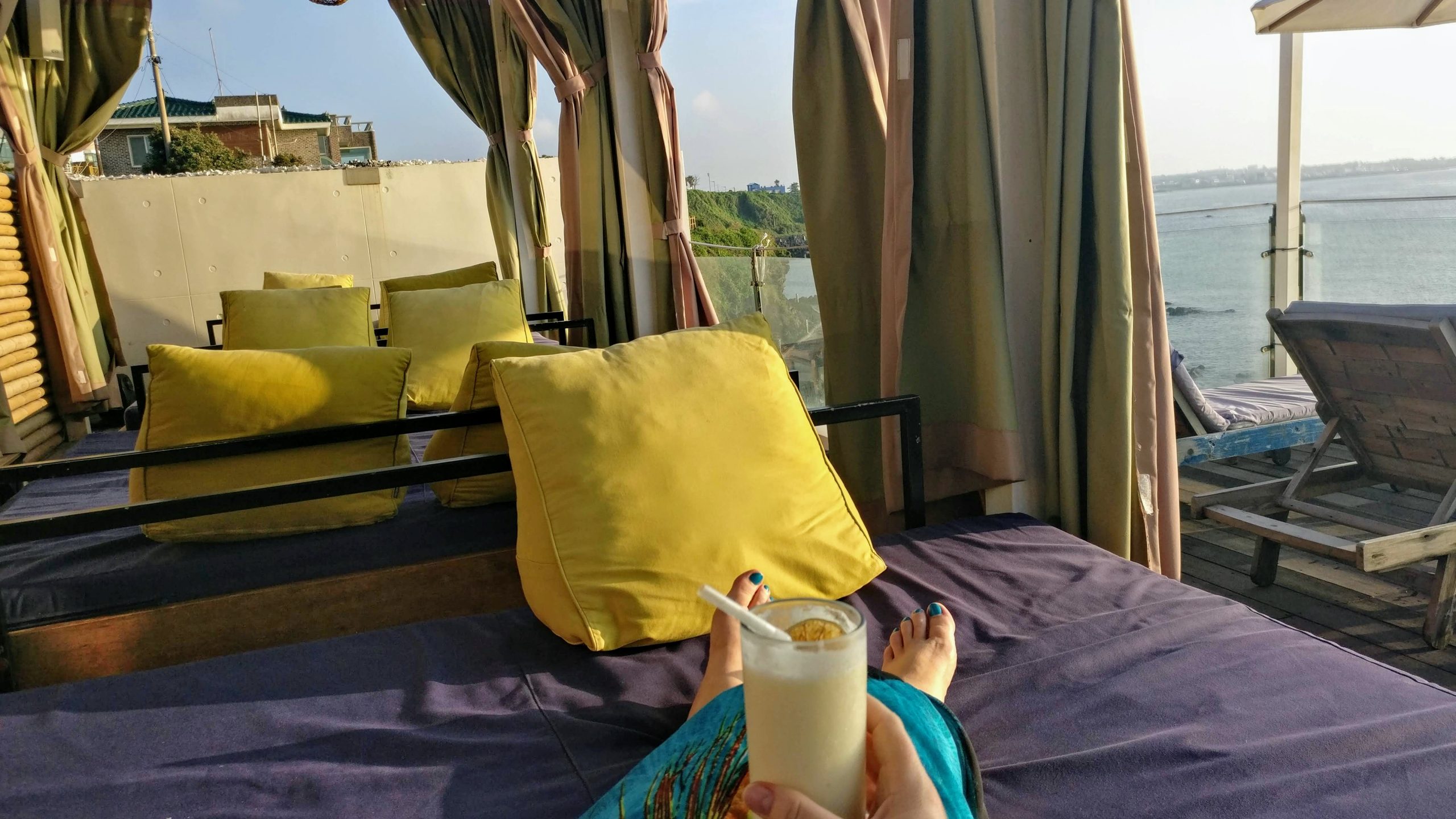 Lord did it get messy from there. Mrs. P finally tried to show me a few of the ropes but was all blame without taking any responsibility. She even told me I should be the one apologizing to Mun**** for the way he had treated me because he was stressed from parents bitching at him about my screwups. Something I wasn’t happy about either but it was also part of his job and often related to ways where I was set up to fail, often by him. I don’t know why they they would have wanted to keep me, but her finally stepping up a little made me worried about whether or not they were going to let me quit without issue. Sorry honey, the effort was appreciated but where had you been all those month when I had been asking for help? A little too little a little too late. Indeed, once she finally believed that I was quitting after I flipped out on Mun**** in front of her and Kathy had spent a night out at dinner trying to play the middle “man”, she started getting nasty from time to time. Things also soured with the prissy Korean teacher who sat next to me in the teacher’s office and had said all of twenty words to me in the past. First, she didn’t even say thanks when I left her expensive lotion with a thank you note for the classes she had to cover during my day off thanks to substitutes not being set up for time off and illness. Then she had a fit when I didn’t assign our students work in essay books after her senior, Mun****, had instructed me to focus on comprehension questions followed by Mrs. P telling me to focus on assigning the kids separate essays. It wasn’t new for me to not be given all the information or proper instruction. That kind of BS was common in hagwons from what I had learned in my research but man, I had never experienced it to that level. It boggled my mind. I had read horror stories about it before coming to S Korea so I knew in theory what I might be up against. In reality, I had indeed ended up having to deal with it for months and I had hit my limit. Still, I was going to have to miserably continue for a two month notice while keeping on with life as usual. Well, with the exception of work turning into a worse hell than it already was. Oddly enough, Mun**** got a little better after I flipped out on him separately in front of Mr. K, Mrs. P and had quit. It made me wonder if I had been pushed out on purpose. If I hadn’t been grasping for any little piece of comfort before that, I sure was then. In India, I had found a kind of pancake I loved that had green onions and more savory ingredients of deliciousness in it. I had liked it enough to think about it ever since. The time Kathy and I had gone out when she played the middle “man”, I had been excited to find out that S Korea had their own version called the pjeon pancake. Another treat was finally checking out a coffee shop in my neighborhood that I had been wanting to for it’s creative edge, though it was a bit of a letdown considering that it didn’t have the kind of warm vibe I was looking for. The last small lifeline was finding a beer and chicken spot around the corner from my place that was open late almost every night. Ironic. Five months after moving there and two months before moving out, I finally found a convenient spot for when we got off work late. A lifeline that packed a little bit more of a punch for the end of the month was the first time I started circling back around to some of the things I had liked on a different part of the island. It made me feel like I had accomplished something. Come full circle in some way. Those places started with the Bomnal coffee shop to ask if the bungalows attached along the coast were for rent. Then I checked out another spot with a high view for some really yummy ice cream that I had made note the previous time to check out. Checking out the see-through kayak rentals (expensive) for another potential sunset, I finally made it back to my favorite bar on the island (to that point), Sunset Cliff, for that day’s actual sunset. I wasn’t even that mad when I spilled some of a 15₩ mojito (after a pina colada of the same price) on me. After all, I had gotten an outdoor cabana bed on the top floor of the almost empty bar. One of the perks of Covid I suppose. It did make me get a little homesick though. Not just for the sunset but because there were some more edgy twenty-somethings who reminded me of home. I was entertained by the thought that they may be used to people thinking of them as intimidating. Oh honey, you’d fit right into my scene. Actually, they might have even been a wee bit vanilla. Anyway, it was a nice night and a nice end to a month that had it’s fair share of highs and lows. I may not have studied abroad in school like I had wanted but it sure felt like I was making up for lost time. You could have convinced me that I was away at sophomore year in college with all of the trials and tribulations that had come with. I may have showed up with a little experience but man was it still hard. I was growing at least. Good and bad, I was growing. And I was proud of myself for it.