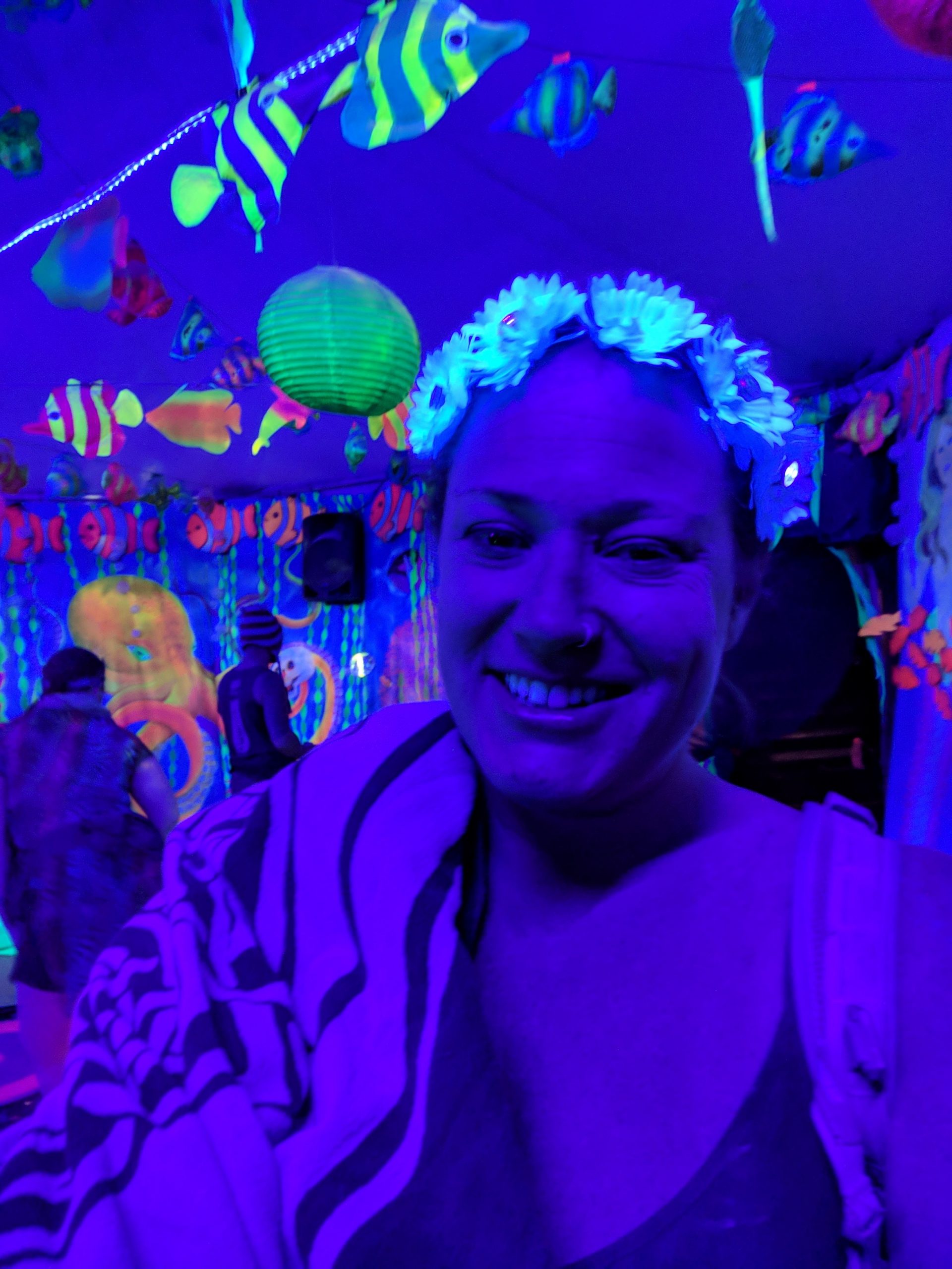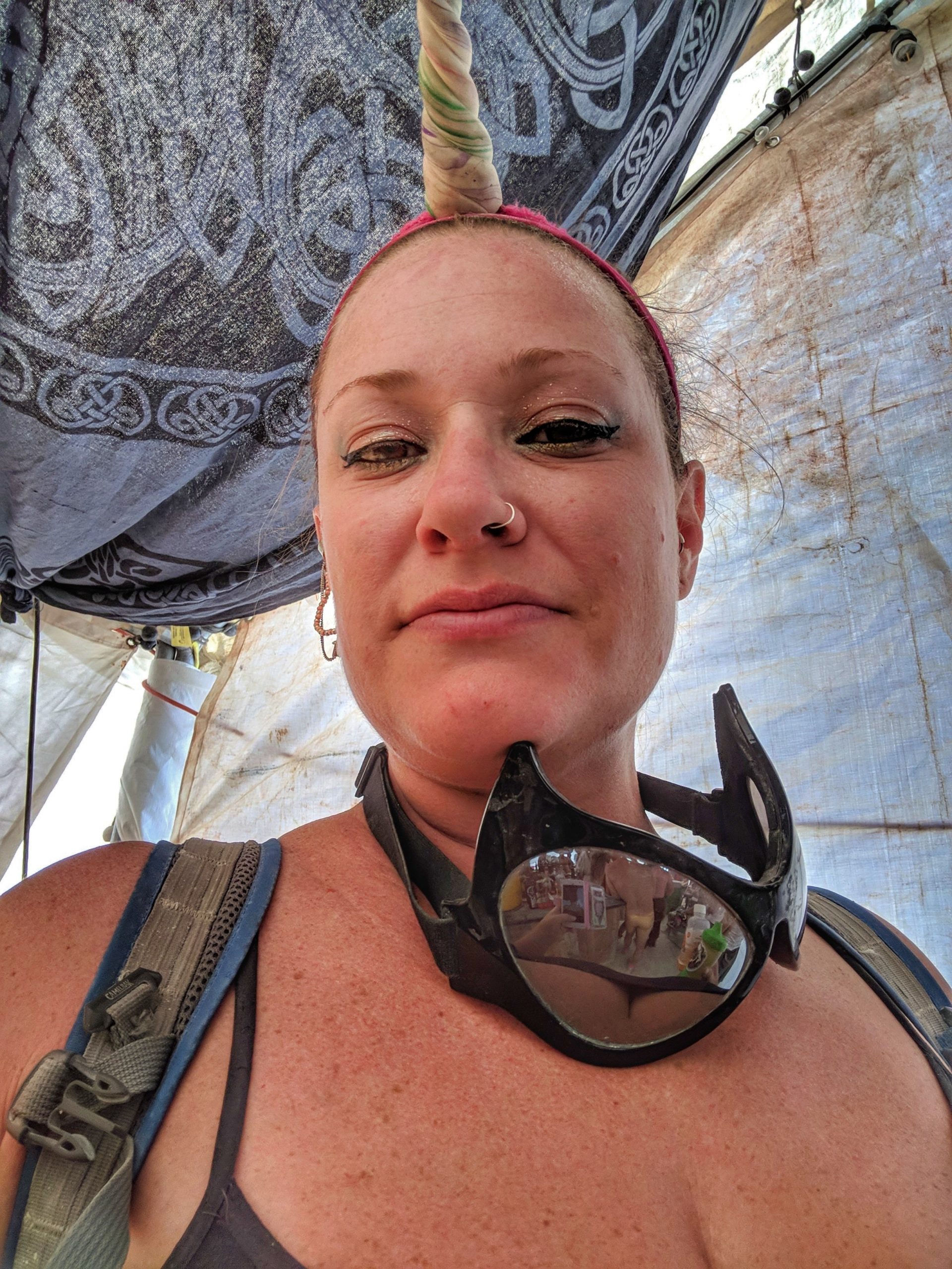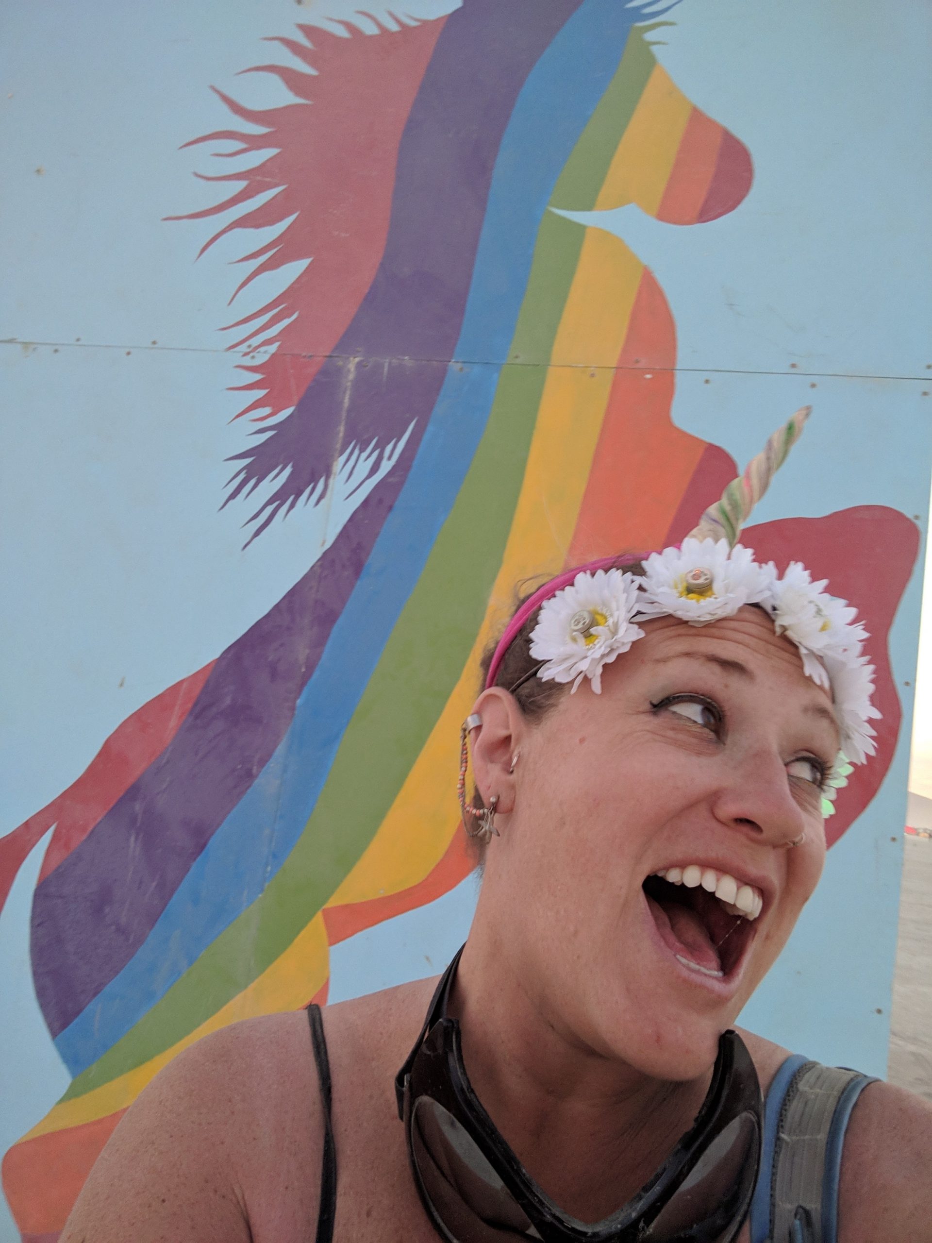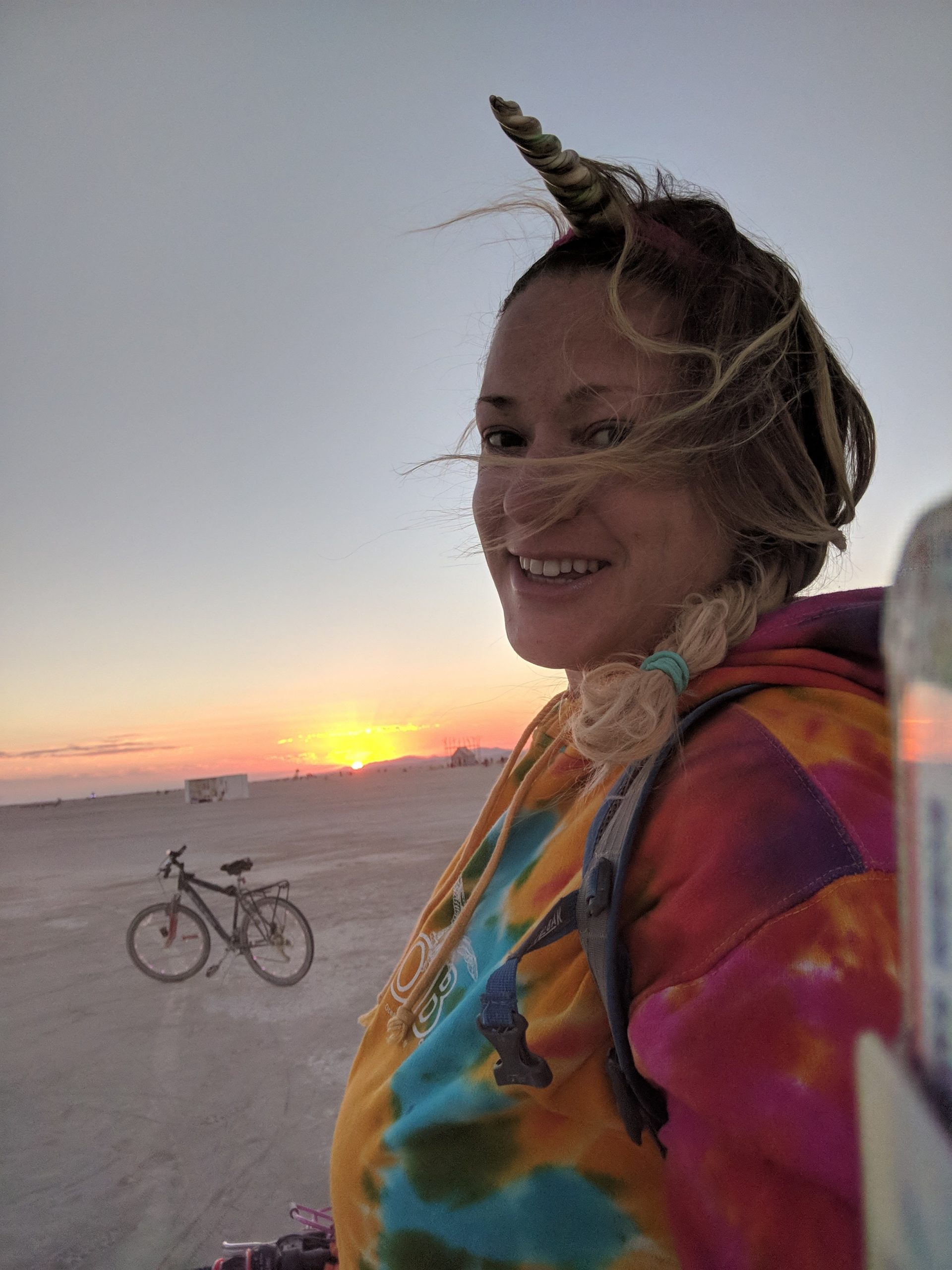 While not a fan of the burn’s EDM music, by far the strongest influence of those offered, many other types that I did like could be found in the nooks and crannies. Case in point, the aforementioned classical and unexpected moments such as riding up upon a man adorned in a pegasus hat and yogi pants while singing opera at a skill level that made me think he must be professional. One of those surprise sidetracked moments on my way to get glow-in-the-dark henna Wednesday afternoon. An outing that also included a sunset wedding on top of a motorhome and new friends who came back to Spanky’s a few hours later.