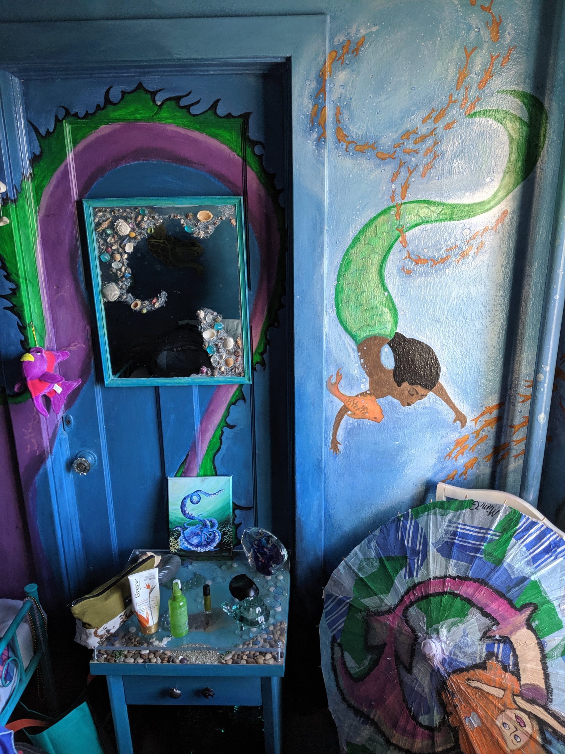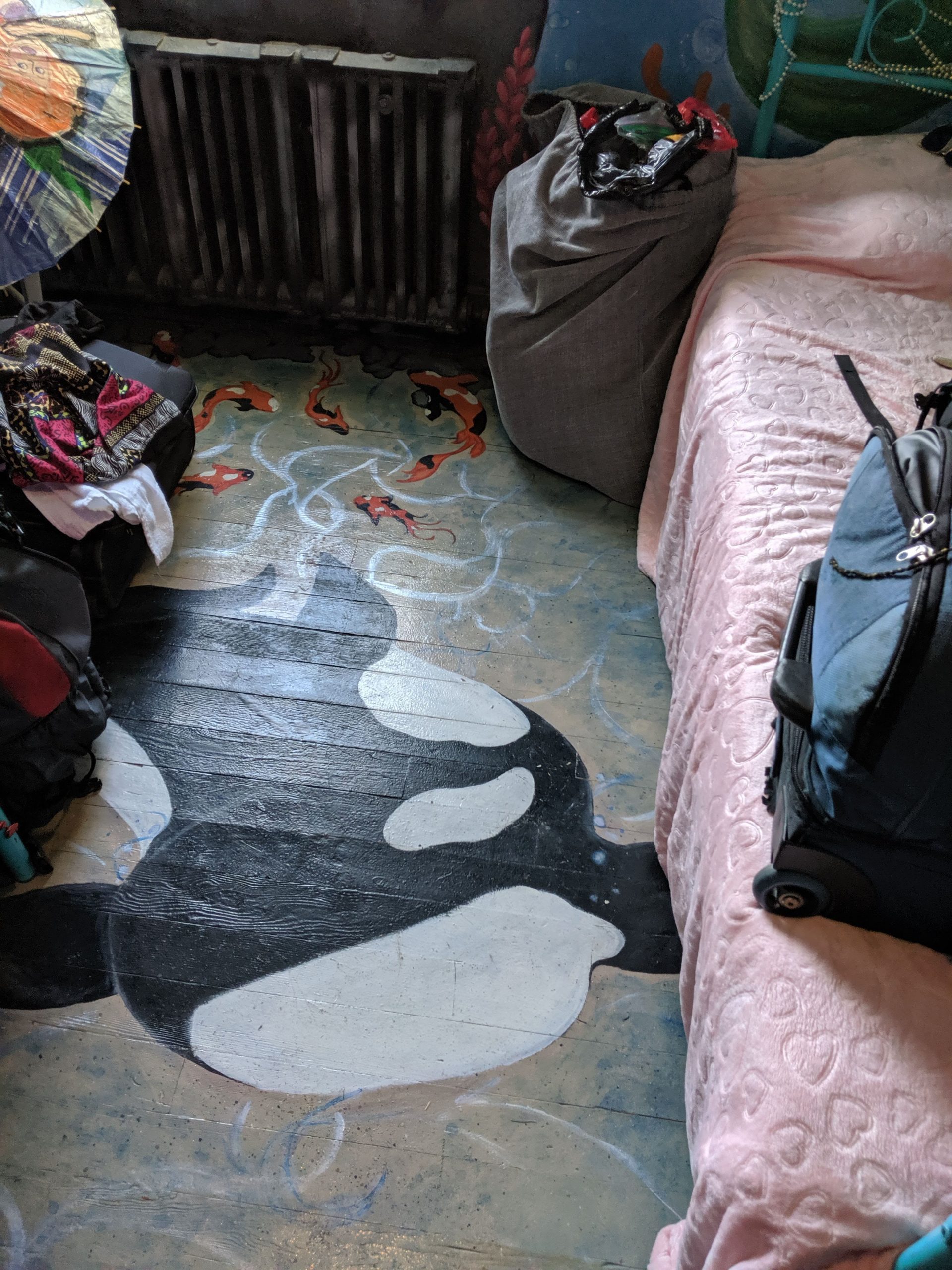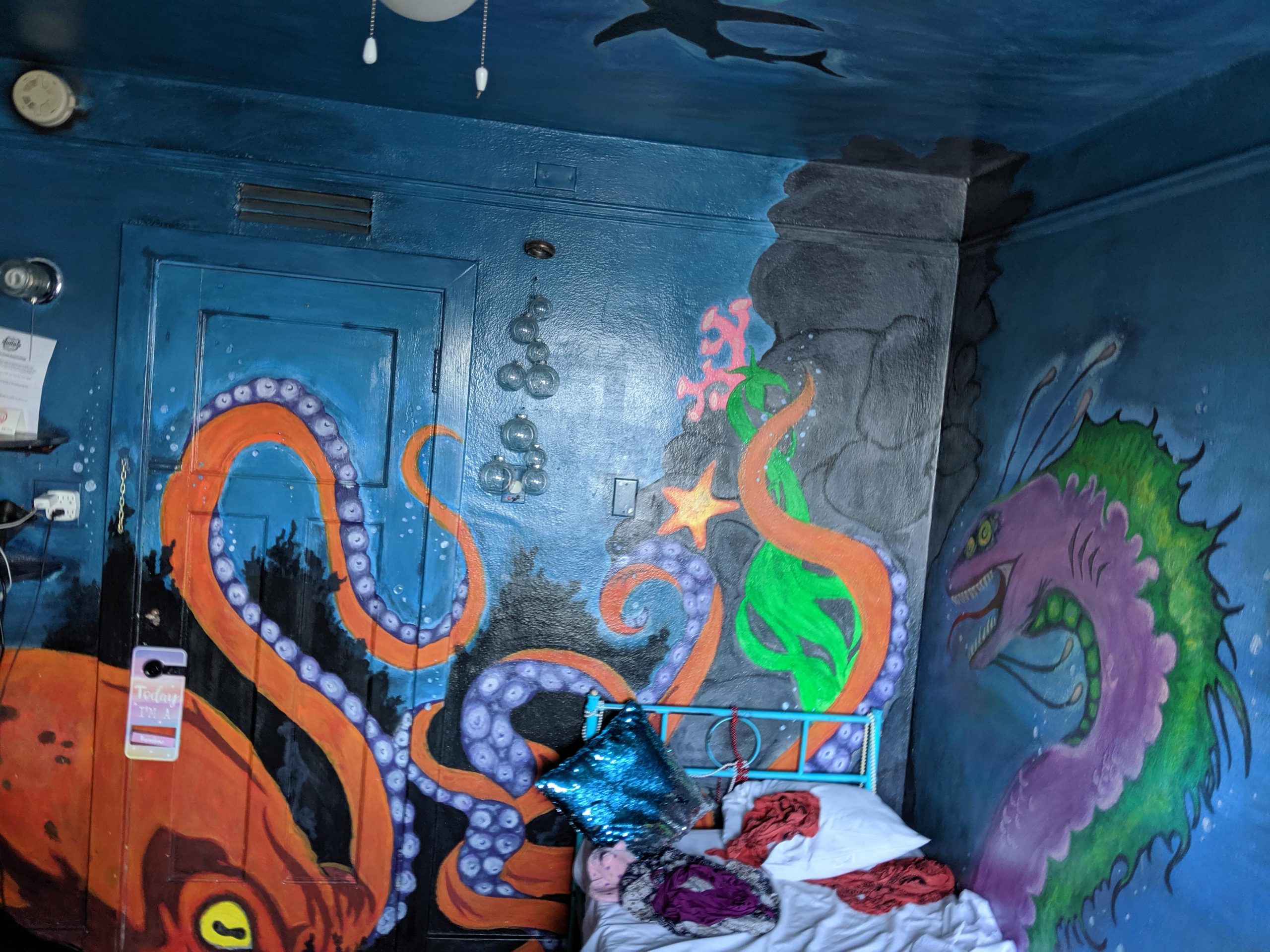 AUG 22ND – THURSDAY Flying to Reno as opposed to road-tripping proved itself to do the opposite of it’s original intent by being way more work than driving. Mostly because of the chaos of setting up extra rideshares. One for my stuff from and to San Diego, one to get me onto the playa from Reno, another to get be back to GSR in Reno and then one for me from the airport in SD to Jewels’ pad for house/dog-sitting. For my stuff, I managed to find someone somewhat quickly through a local burner page on Facebook. The connection was strained from the beginning, though, as it seemed hard for him to grasp that he would only be taking my stuff, not me. I in turn got confused about what I must be missing that made it so hard to understand and where I was failing to communicate clearly. It was a pretty clear flag for how things were to go down (as if I needed help in the hot-mess department) but I had such a long laundry list of stuff to take care of, I let it go. At least joining a burner cocktail hour at his house the week before takeoff made me feel confident that he was an upstanding guy. Upstanding in intention but still not good with coordination or how much he took on. By the time we were all to leave, he had committed to taking stuff for way too many people (for a fee) making the whole thing even more of a mess. Among other things, he hadn’t realized he would be taking my perishables and I had failed at packing the cooler with enough ice for that food to make it the two days to the playa. In no small part because it was only supposed to take one. He had decided last minute to go a day later and hadn’t thought it a big deal to clear it with all of us. Doing my best to hold back panic with reminders that things going awry was the way of both the burn and travel, two main focuses in my life, we ended on the note of him putting in an extra bag of ice on his way and me lugging the heavy tent with me. Part of the reason I was going by plane was already out the window but the main goal had actually been to get some sleep before getting onto the playa. I still had a shot there. A shot that was also to end up missing the mark thanks to anticipation-induced insomnia and a roomie who thought bringing a guy back to hookup with was a good idea. That part was fine, actually. What wasn’t was for both of them to be constantly opening and shutting the door all night for god knows what reason. Before that lovely grand finale of the trek, though, and after dealing with the headache of figuring out my stuff, I had gotten to the airport only to find out that the flight had been delayed. I could only laugh about that though I could have strangled the dude sitting by me in the airport as he loudly chomped away on his food and talked at full volume on his phone. Finally getting to the Morris Burner Hostel in Reno and still having some time in the afternoon, I managed to turn my frown upside down when walking right into being able to show off my knowledge of the 10 Principals for a discount followed by being offered homemade biscuits and gravy. I also lucked out in being assigned to a very cool mermaid room. Forcing myself to not let an exhausting rough start make me miss out on too much after check-in, I even managed to make it to the thrift store across the street in that uninviting industrial neighborhood followed by checking out the grounds of the actual hostel. There was art all over the place along with the varied themed rooms I had checked out earlier. Meeting a new humpty-hump door-squeaking roomie when dropping my stuff, a sweet gal from overseas who had never been to the burn, I had been excited for her being a virgin and a little worried on her behalf that she was going to tire herself by going out to meet up with friends before hitting the harsh desert. Those feelings of excitement and care were replaced with agitation, however, once her and the dude she brought back were in and out, in and out, in and out. Man. I just couldn’t catch a break.
