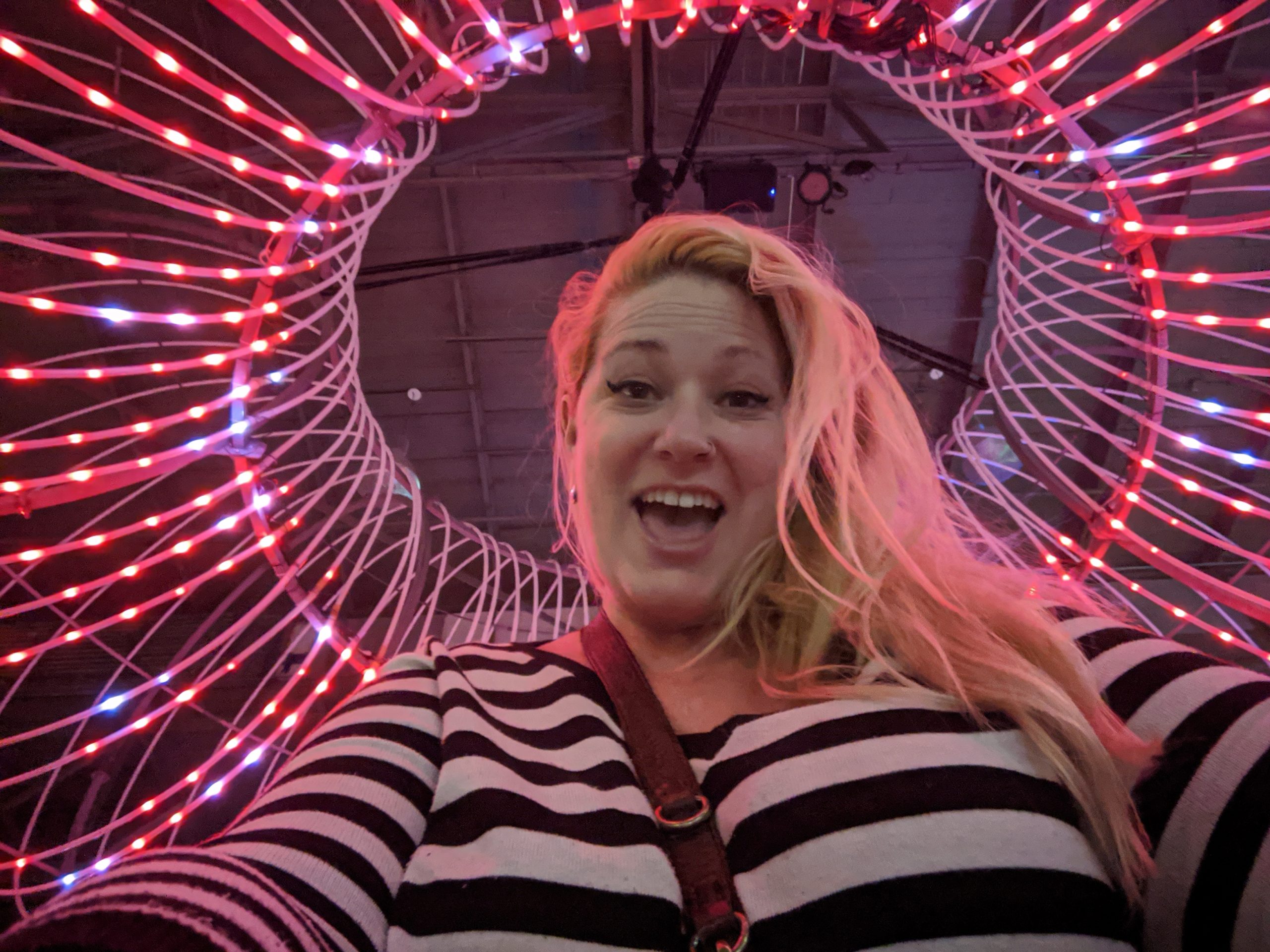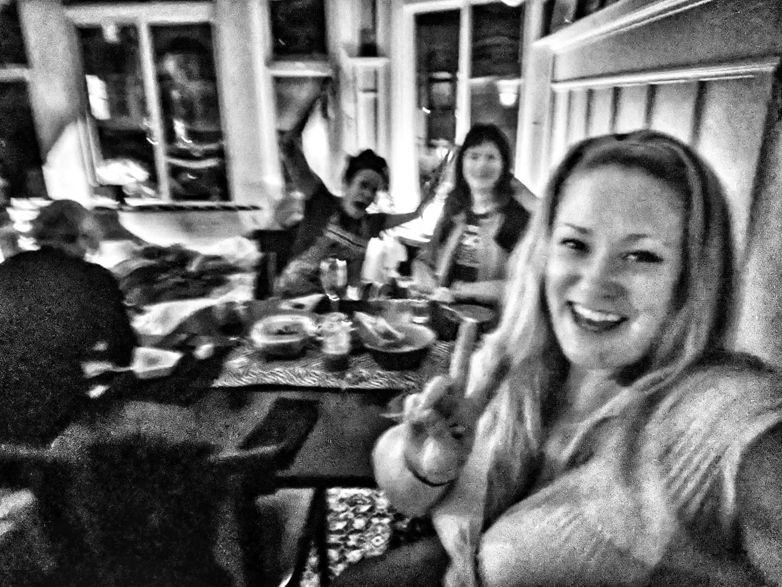 Dancing on the deck in a hail storm the next morning, I got to check out an exhibit called Glow: Festival of Lights later that night at the SF Exploratorium and even squeeze in a couple drinks at Henfling’s when back in the mountains. I was proud of myself for getting better at the balance of a work/life combo. If only I could figure out how to squeeze some more sleep in there, it would be the trifecta. Part of that balance over all, I was learning, included going with the flow with the ever-present unknowns. Not something I had a history of handling well but was finally getting better at. Case in point, I hardly worked at all on the 19th due to sharp stomach pains and needing to recover from a couple days of making below average earnings. Well, not working except for an hour before Aaron treated Brigit and I to dinner at Cowboy. My food was unfortunately disappointing , which we thought must mean a new chef, but the atmosphere was still great and I was happy to be taking a break to go out to dinner with them. The days from there were to continue with more work and hanging at local haunts. Santa Cruz Mountain Brewing, a quick drop in at the Santa Cruz tasting room of MJA Vineyards to say hi to a gal I knew, Brady’s Yacht Club, Joe’s (though I wasn’t feeling the crowd so left quickly), Henflings for live music and Monty’s to sit around the fire for a chat. It was then that I was asked about what qualifies me to identify as a traveler. I thought about how the reasons reminded me of the same as to why I identified as a writer. It was just who I had always seen within myself. Where I connected. I didn’t have to “do” anything, I had been born that way. My response, though, was that I focused my whole life around it, even when at home in CA. Fair enough but it didn’t feel right to be exposing only the tip of the iceberg like that. More than to myself, it wasn’t fair to others who could be impacted by my words when it came to their own passions. Showering later (one of the best places for replaying conversations), I wished I would have shared some of the details that made blanket comments like that show more of a reality. Things like how I had ended relationships, said no to good job offers and tolerated attitudes from those closest to me acting as if I was making the wrong choices in life when I needed their support the most. How painful it all was and how much it made me wonder, not only if I was taking the right road, but also if it was worth it. Yes, though. It was. If for no other reason, because we can’t magically change ourselves into different people. Starting to think back with a wish that I could have found the mentor I had desperately wanted, I also wished that there was some way to go and convince Younger Me that I didn’t need any of the “on paper” stuff to to make me who I was. For a minute, I was lost in the past and feeling a little melancholy. A mourning for all the happiness lost. My mind kept wandering. I started to think about all that had happened since and how I liked to joke that I had nine lives because of all of the different ones I’d already lived. I never talked about how sometimes I could feel myself dying at the end of one and being stuck in a dark abyss before starting the next. The end of who I’d been and what my world had been. A goodbye and mourning. Then the purgatory that came before I could be reborn into the next. It felt like death while my heart still beat. Was that part of having a writer’s spirit? To need more adventure and culture? I wondered if I would ever slow down and be content enough to settle in. A thought that both worried me for fear of dimming my light and also sounded comforting in that maybe it would make life less hard and painful. Less full of loss. Life goes on. A happy ending to my month happened when Mia became the first friend on one side of the state to join the other. Originally on her way up from SD to move to the Bay as a traveling nurse at Stanford, the hospital called her on her way to retract the offer before their last stamp of approval because she had refused to waste her time to go in for a second drug test when it was there error for what they hadn’t taken care of the first time. Talk about a sucky situation, I would have been a stressed-out mess. She being more kick-ass than me, was able to hold herself together and turn it into a vacation by the time she arrived. I was excited to have her there whatever the reason. That meant that when she got there on the 21st, I was determined to meet up with her in the China Town neighborhood of San Francisco for lunch. The next day I joined in again at her friend Gosha’s there in the city for a supurb dinner they had put together. She was tired after that, though, so I went out by myself for one of my favorite evenings in SF ever.