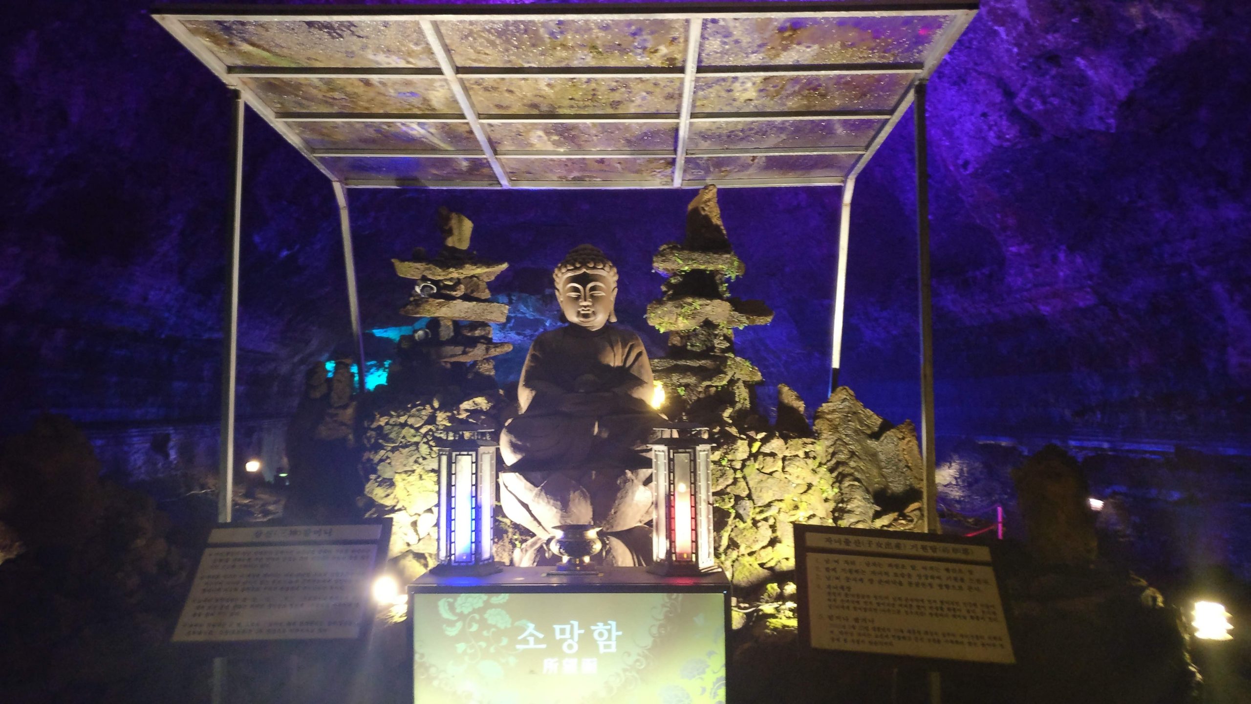 One of my treats for the month was getting to pup-sit a rescue named Honey for a woman I met at volleyball and her fiance. Another was stumbling upon some cool stuff at a bus transfer on my way to a hike in the forest and deciding to go with it. Checking out some horses, I then found a tiny joint for my first hamburger on the island that I got to enjoy`with a sweet furry friend. After that, I found Ilchul Land. An “ecological and cultural attraction” that had a cave to cool off in with an awesome art installation inside it. It was easily one of my highlights on the island to that point. sentimental fool that I was, I admit to having even teared up a bit.