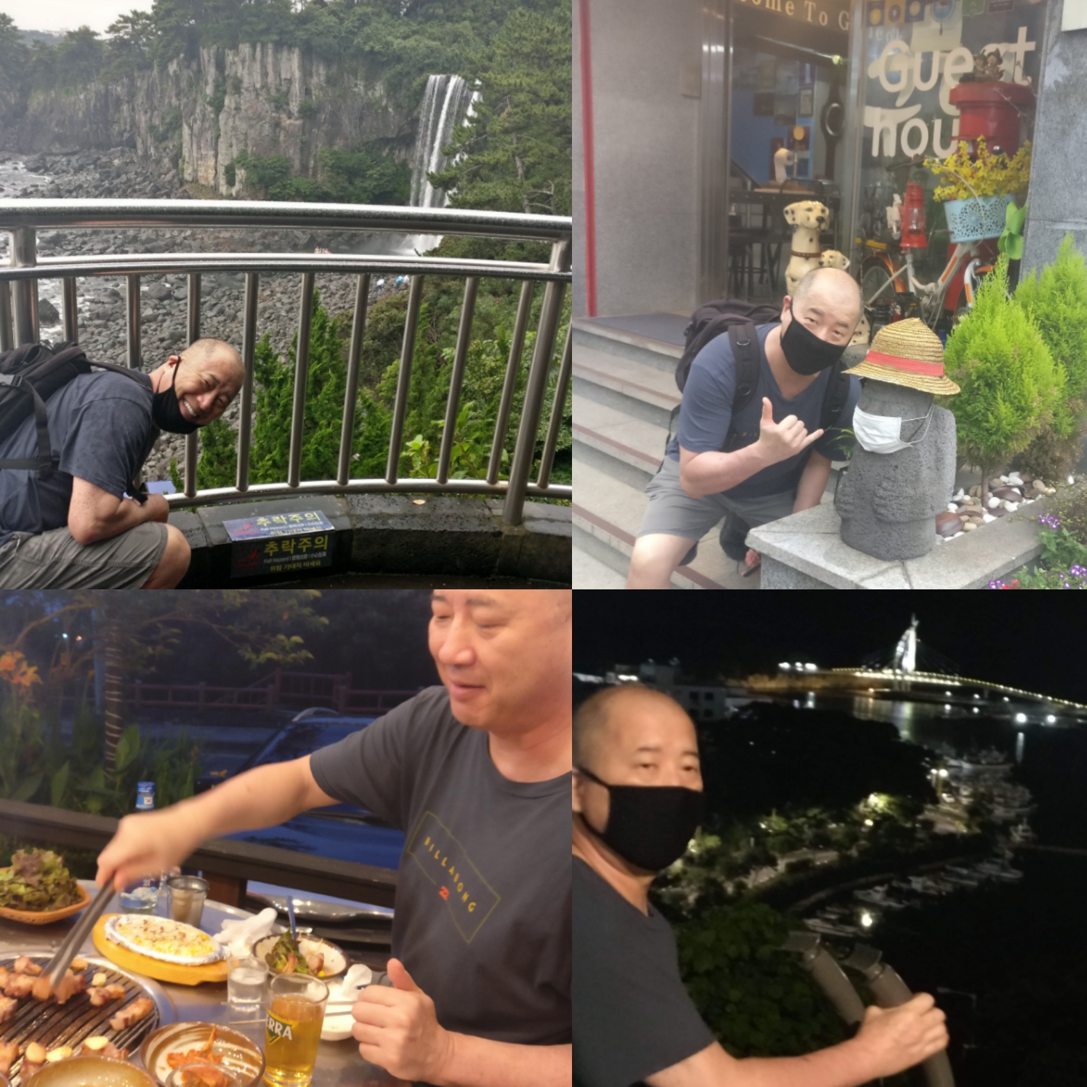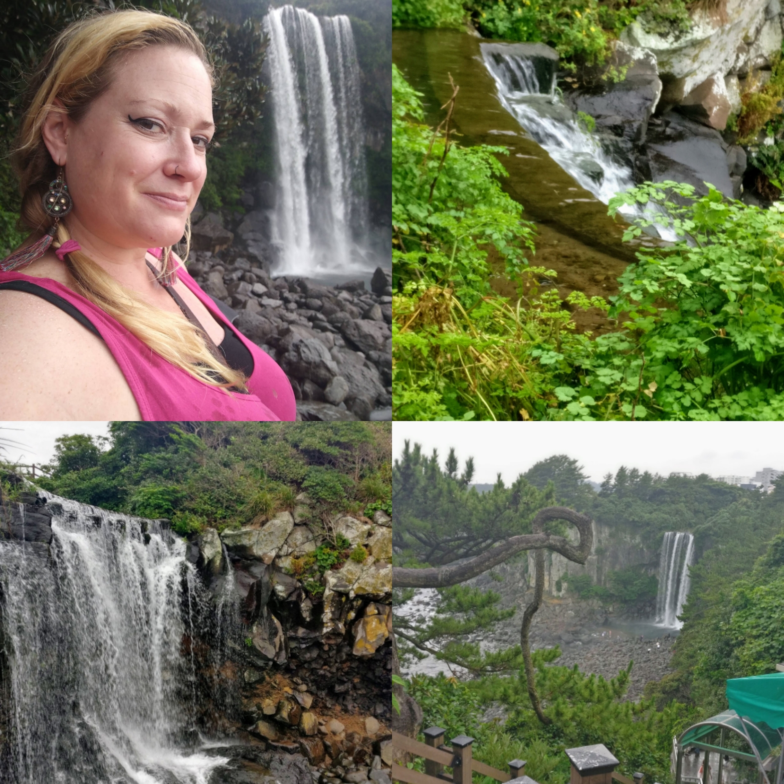 A week after that was happy days again. It was staycation time! An acquaintance in the military reserves who was stationed in Busan came to visit. I hadn’t found cheese when we made the plan so when he showed up, he brought a huge block of cheddar. Oh sweet happy heaven! That would have to wait though since, getting off work late on Friday, we headed straight to an expat spot called Surfer Bar Goofy Foot where we had fun hanging with strangers and eating Western food. I even ran into the guy I had make out with on the 4th. Then to my dismay, we stayed in a hotel (give me a B&B or a hostel) and woke up for a day of enjoying one of the island’s waterfalls. Jeongbang Waterfall was the only in Asia that fell directly into the ocean. It was a treat until he fell on some big wet boulders and smacked his head. The waterfall had been so loud, I hadn’t even heard it. What I did hear was the people standing behind me gasp. God forbid they actually do something. When I turned around, he was sprawled with limbs in every direction like a cartoon that had splatted after a long drop. In hindsight, I probably should have taken him to a hospital to get checked out. Instead, we just sat for a while with me watching him and asking questions. Do you have a headache? How is your vision? All that. Once I wasn’t too worried anymore, it was time for the dad jokes to come out. And oh baby was I on a roll.
