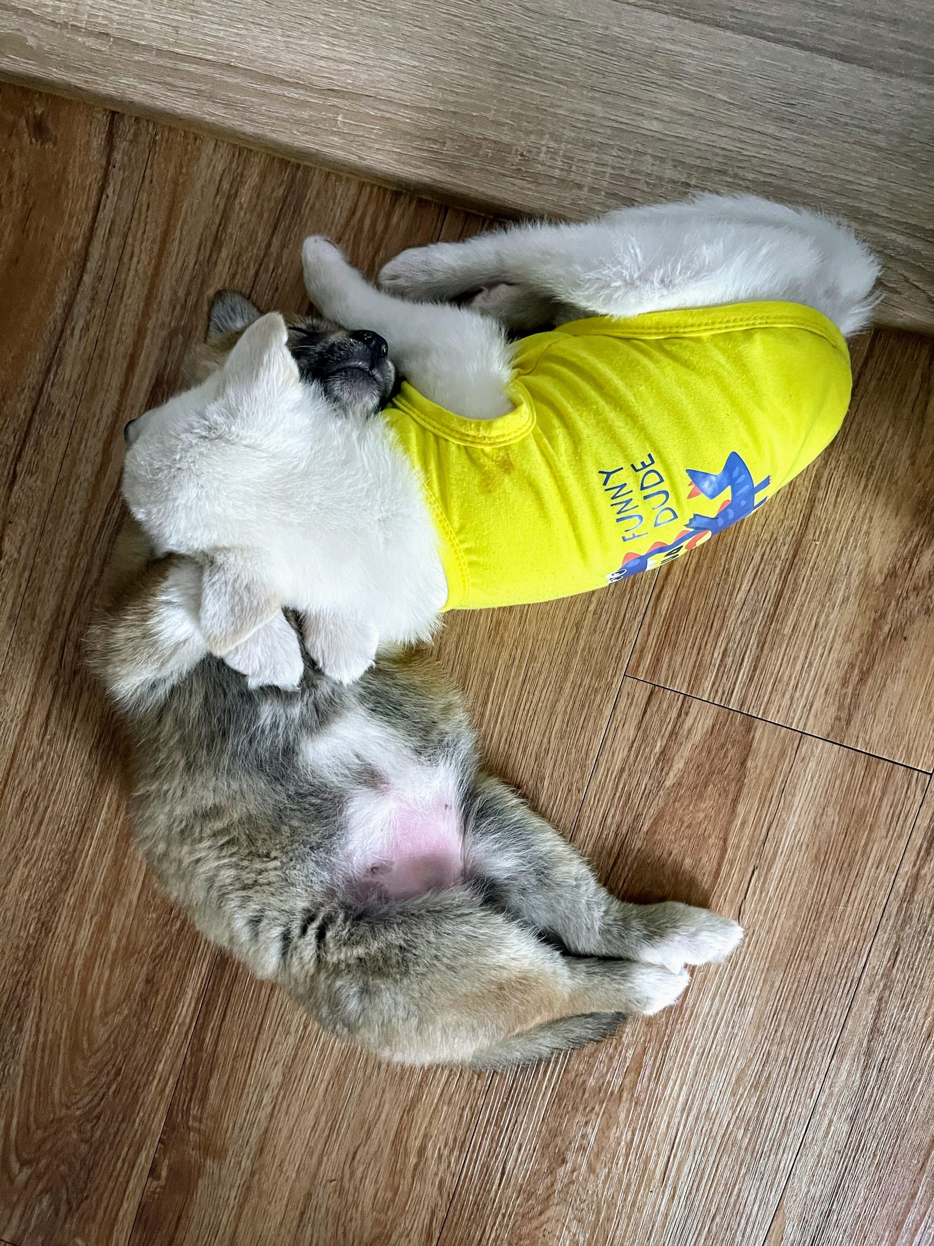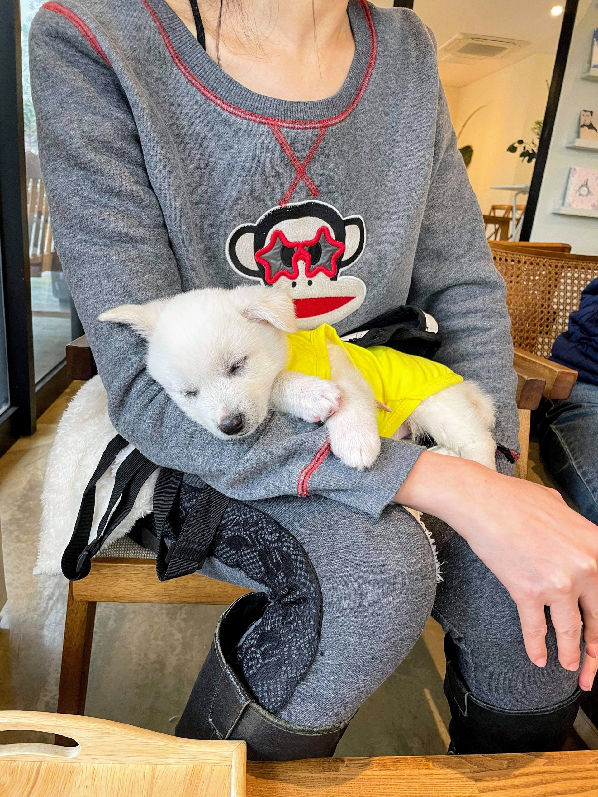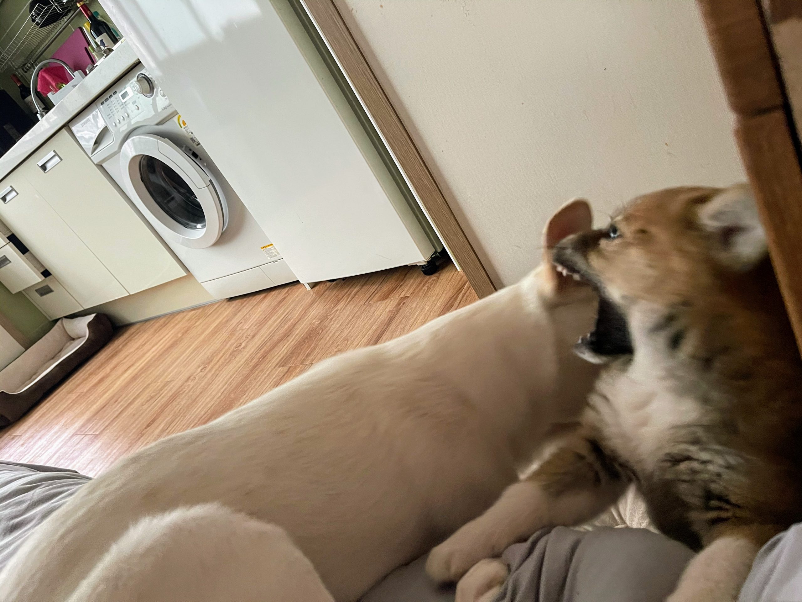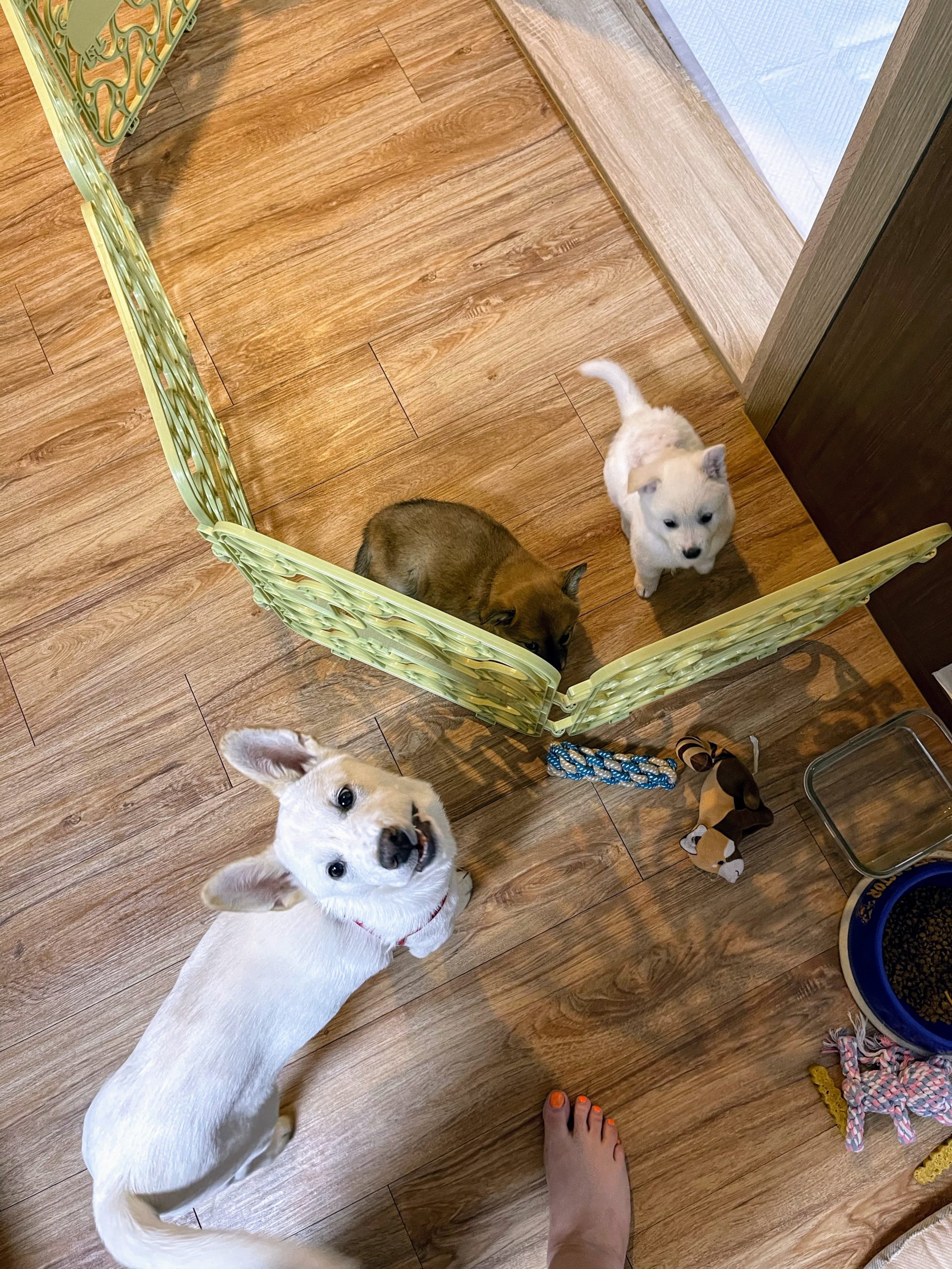 The new hooman parents of Boo (formerly Latte) and Jeju (formerly Pumpkin) were wonderful about sending updates and pictures. It was hurting missing those boys so I hung on every one. Even though it helped finding solace in Soju, they had been the first fosters with me long enough to grow through the phrases of being babies and into teens. I wouldn’t have a chance to keep missing them too much for long, though. Regardless of already being pupped-up, Eun Suk suckered me into taking in two more tiny pups. A brother and a sister. The brother was smaller, gentle and it would turn out had ringworm. The sister was a destructive troublemaker. I didn’t need to be too involved with Saja, though, as was doing great in his new foster home. Thank goodness the woman who was taking care of him had a balcony he could come and go on at his leisure, as he continued to be more of an outdoor dog who didn’t really like being inside. On top of the three with me, Eun Suk also wanted me to take in another litter of five. Three ended up dying from the Parvo they caught in the “shelter” before I could, though. It all was a lot and boy was I grateful for any help I could get. When an expat named Stacie came over to volunteer with taking Soju out for a walk while I was at work, I was grateful. Later her and her boyfriend (who would eventually become my colleague) would even donate a bunch of toys. Things were growing fast and it was welcomed help.