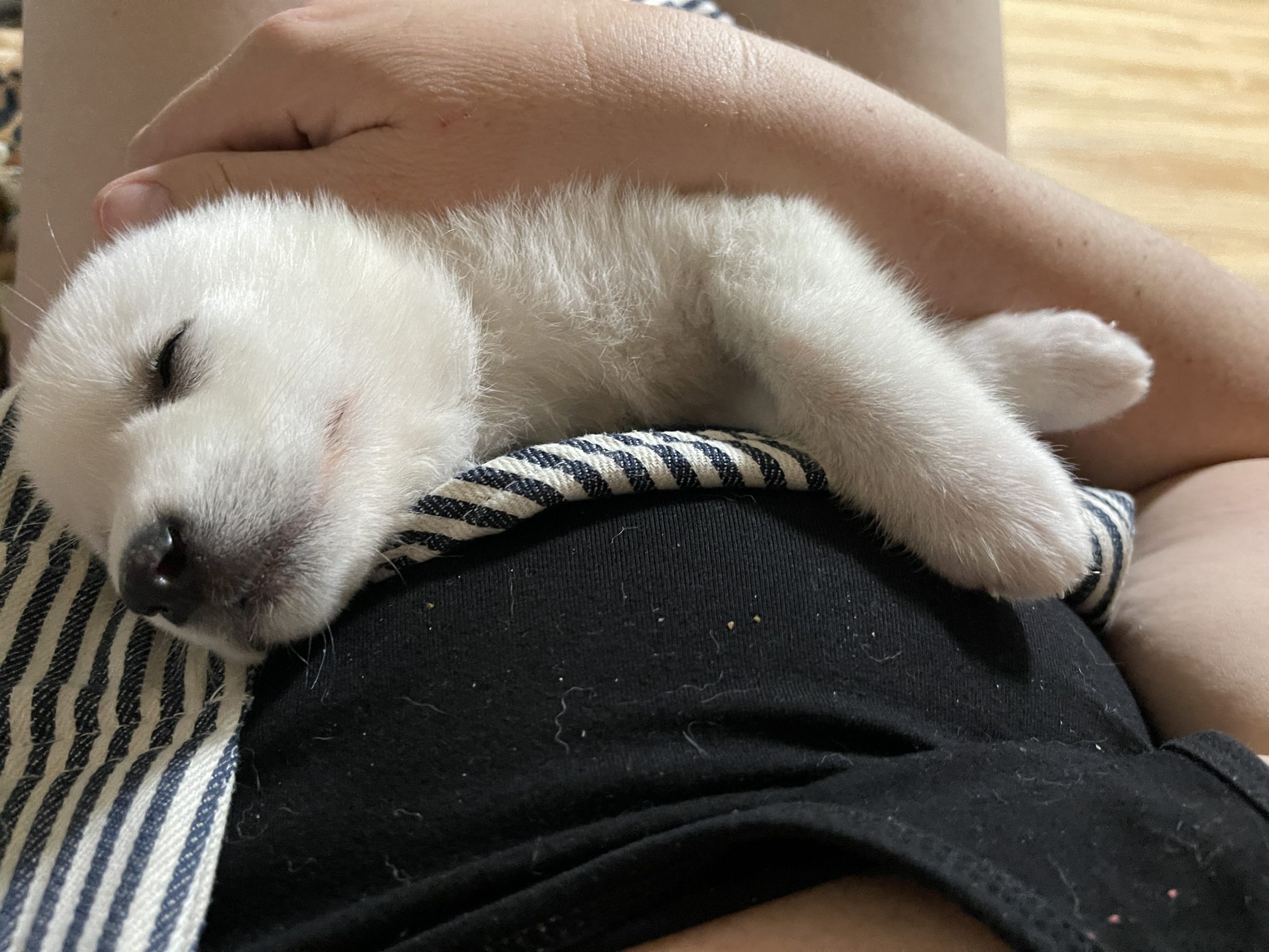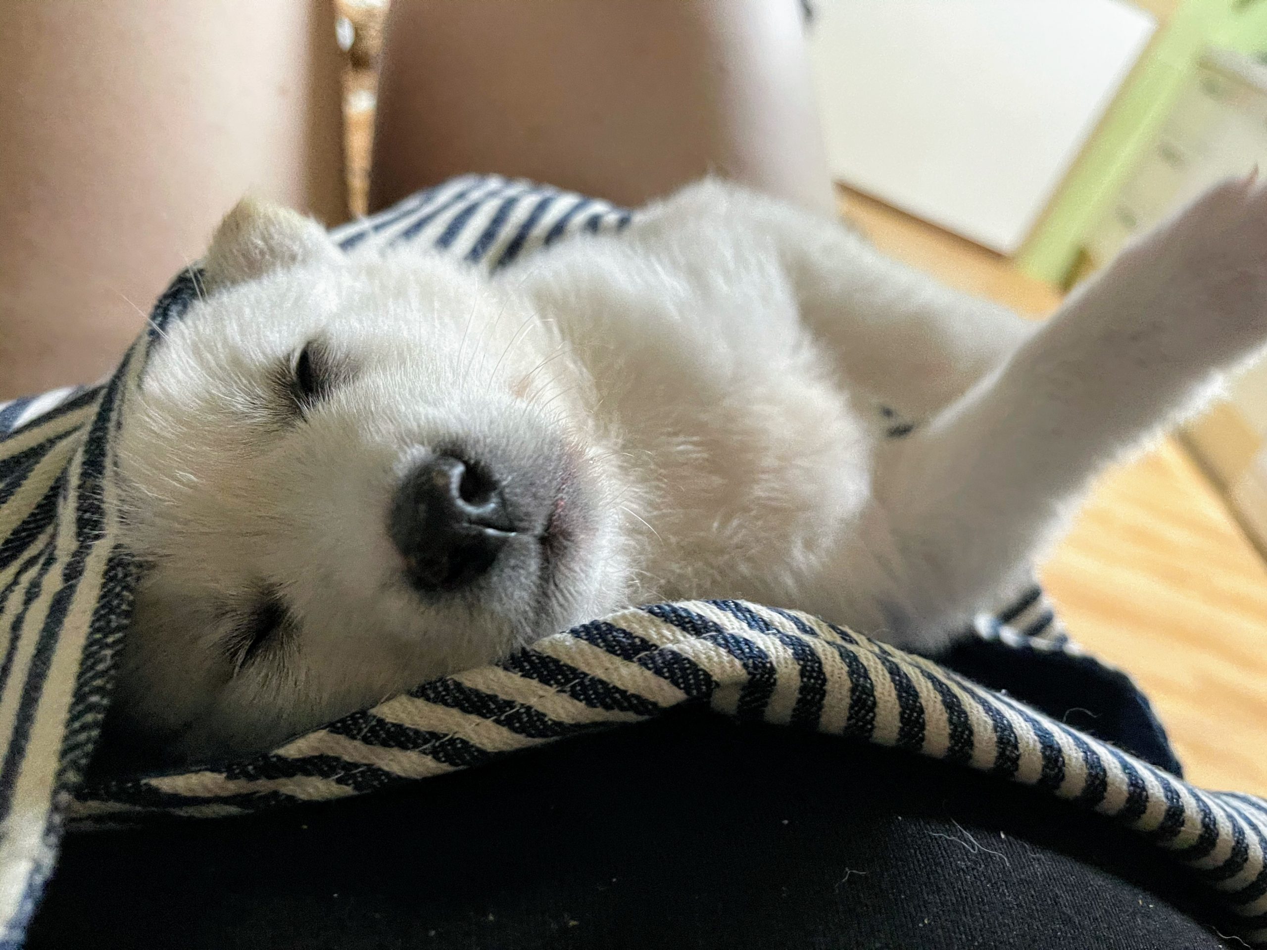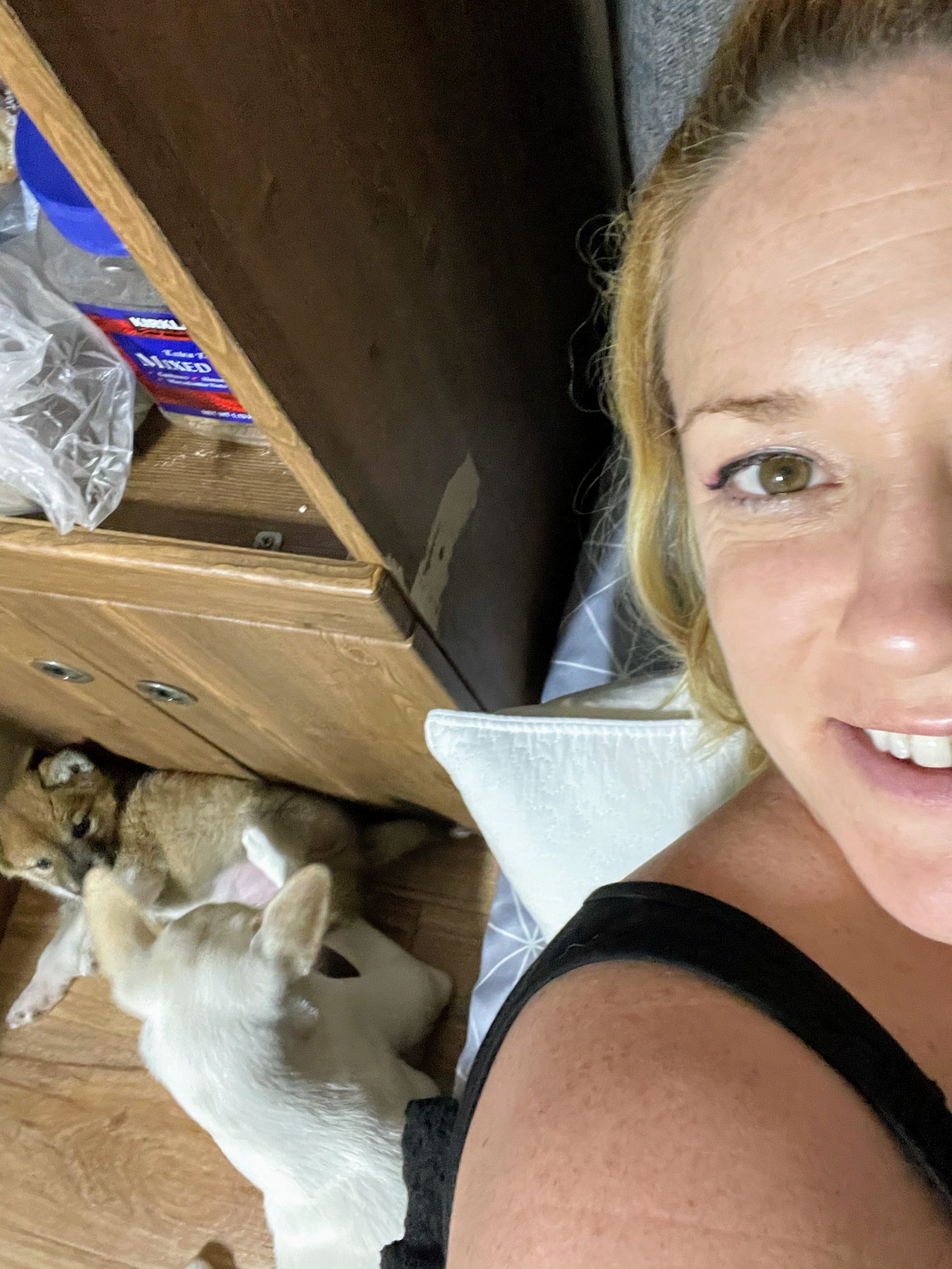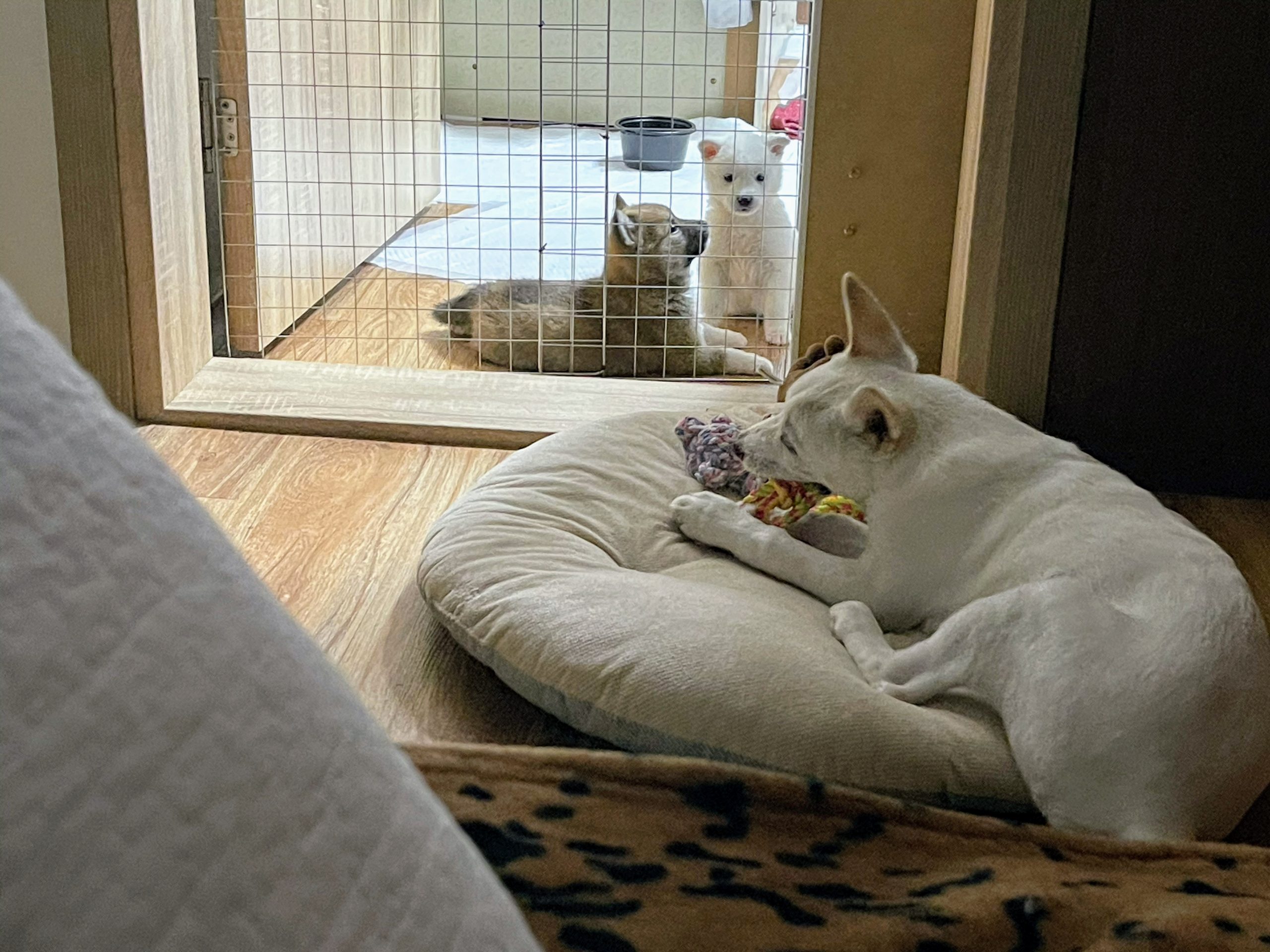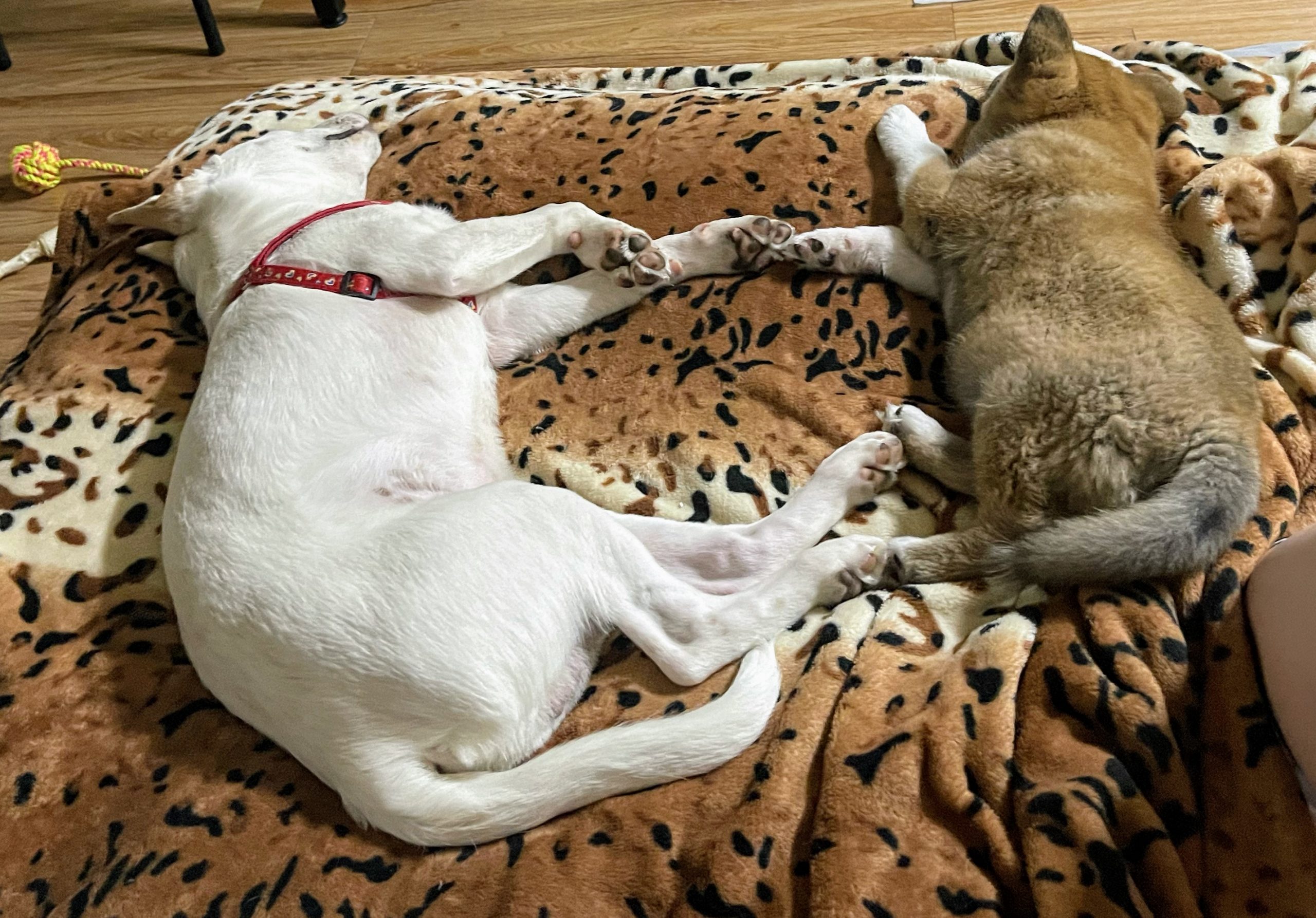The new hooman parents of Boo (formerly Latte) and Jeju (formerly Pumpkin) were wonderful about sending updates and pictures. It was hurting missing those boys so I hung on every one. Even though it helped finding solace in Soju, they had been the first fosters with me long enough to grow through the phrases of being babies and into teens. I wouldn’t have a chance to keep missing them too much for long, though. Regardless of already being pupped-up, Eun Suk suckered me into taking in two more tiny pups. A brother and a sister. The brother was smaller, gentle and it would turn out had ringworm. The sister was a destructive troublemaker. I didn’t need to be too involved with Saja, though, as was doing great in his new foster home. Thank goodness the woman who was taking care of him had a balcony he could come and go on at his leisure, as he continued to be more of an outdoor dog who didn’t really like being inside. On top of the three with me, Eun Suk also wanted me to take in another litter of five. Three ended up dying from the Parvo they caught in the “shelter” before I could, though. It all was a lot and boy was I grateful for any help I could get. When an expat named Stacie came over to volunteer with taking Soju out for a walk while I was at work, I was grateful. Later her and her boyfriend (who would eventually become my colleague) would even donate a bunch of toys. Things were growing fast and it was welcomed help.