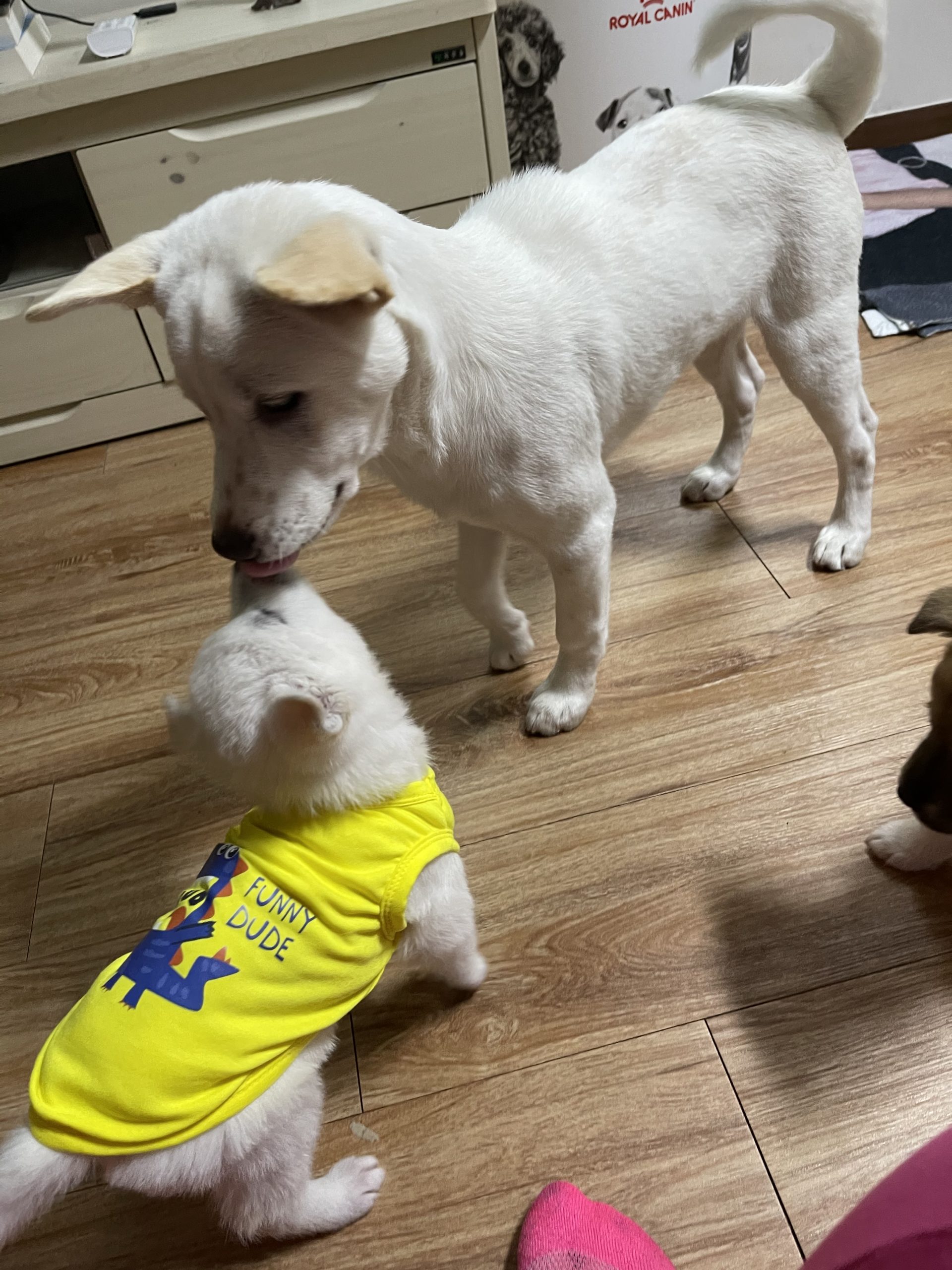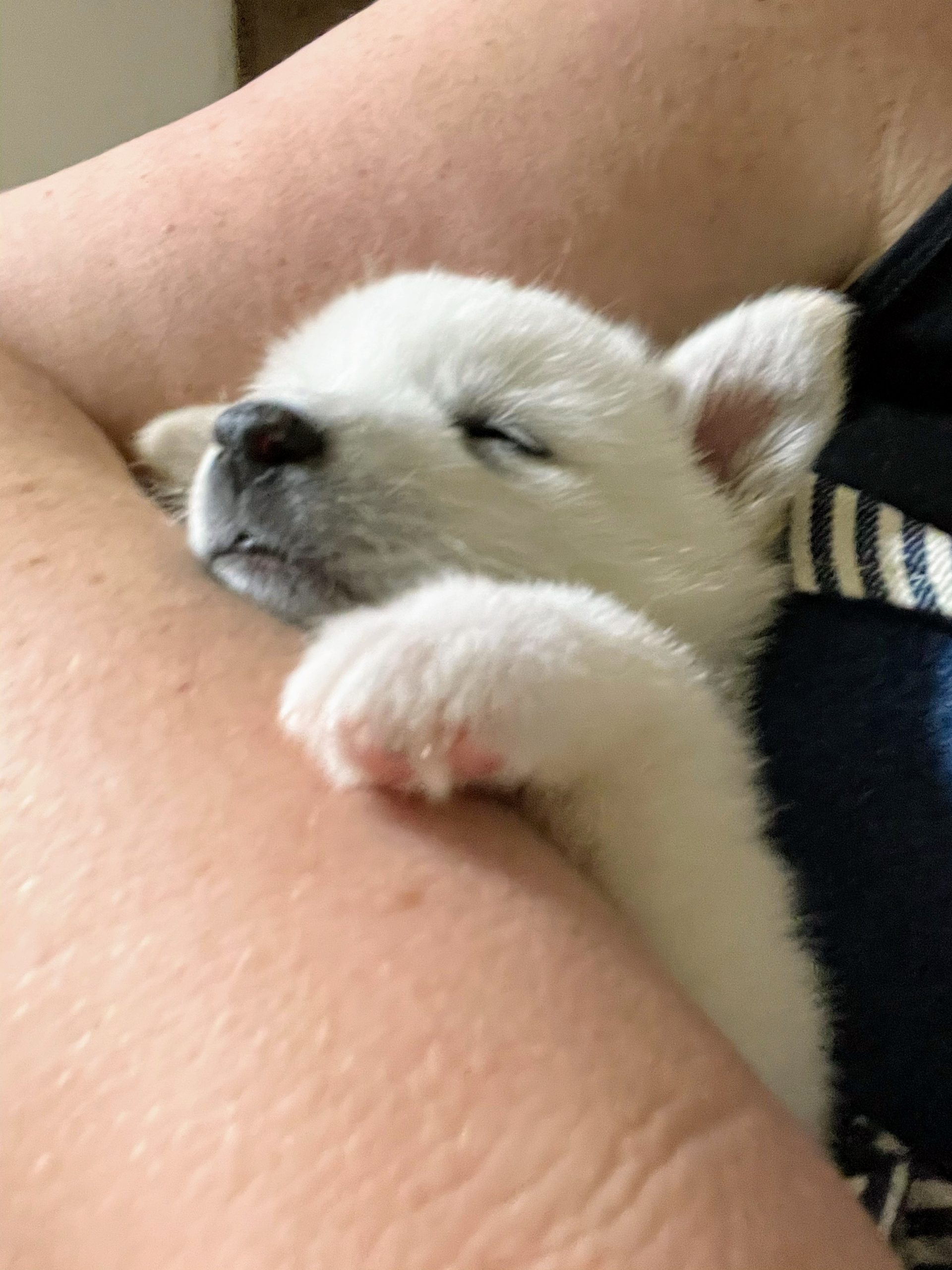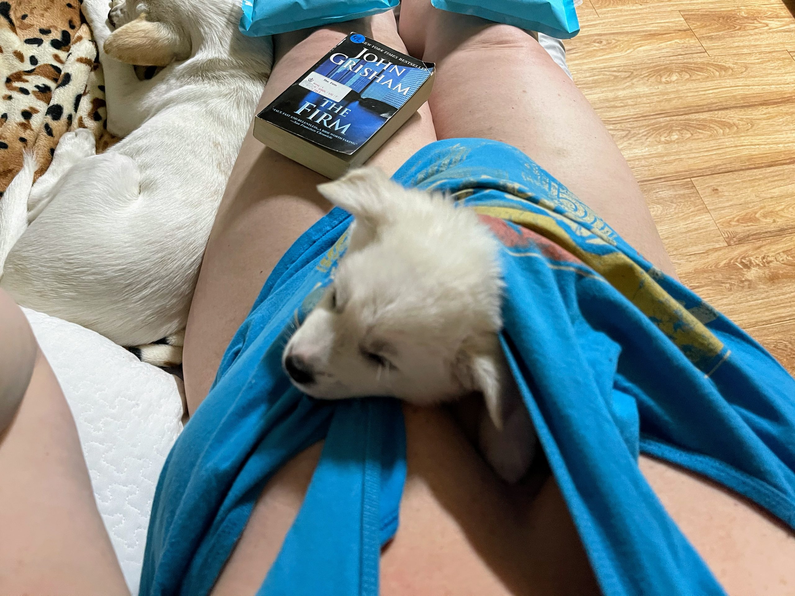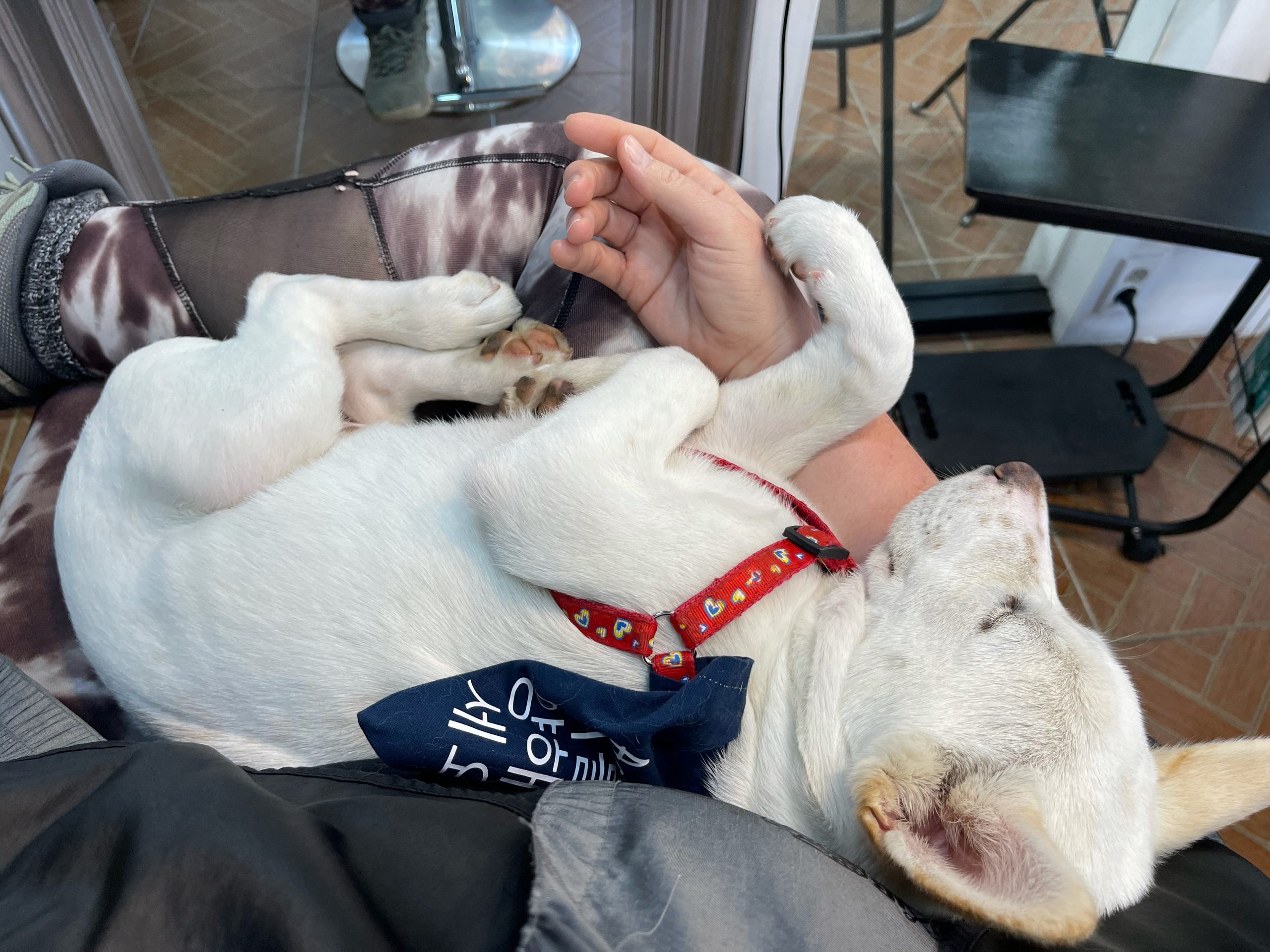 The new hooman parents of Boo (formerly Latte) and Jeju (formerly Pumpkin) were wonderful about sending updates and pictures. It was hurting missing those boys so I hung on every one. Even though it helped finding solace in Soju, they had been the first fosters with me long enough to grow through the phrases of being babies and into teens. I wouldn’t have a chance to keep missing them too much for long, though. Regardless of already being pupped-up, Eun Suk suckered me into taking in two more tiny pups. A brother and a sister. The brother was smaller, gentle and it would turn out had ringworm. The sister was a destructive troublemaker. I didn’t need to be too involved with Saja, though, as was doing great in his new foster home. Thank goodness the woman who was taking care of him had a balcony he could come and go on at his leisure, as he continued to be more of an outdoor dog who didn’t really like being inside. On top of the three with me, Eun Suk also wanted me to take in another litter of five. Three ended up dying from the Parvo they caught in the “shelter” before I could, though. It all was a lot and boy was I grateful for any help I could get. When an expat named Stacie came over to volunteer with taking Soju out for a walk while I was at work, I was grateful. Later her and her boyfriend (who would eventually become my colleague) would even donate a bunch of toys. Things were growing fast and it was welcomed help.