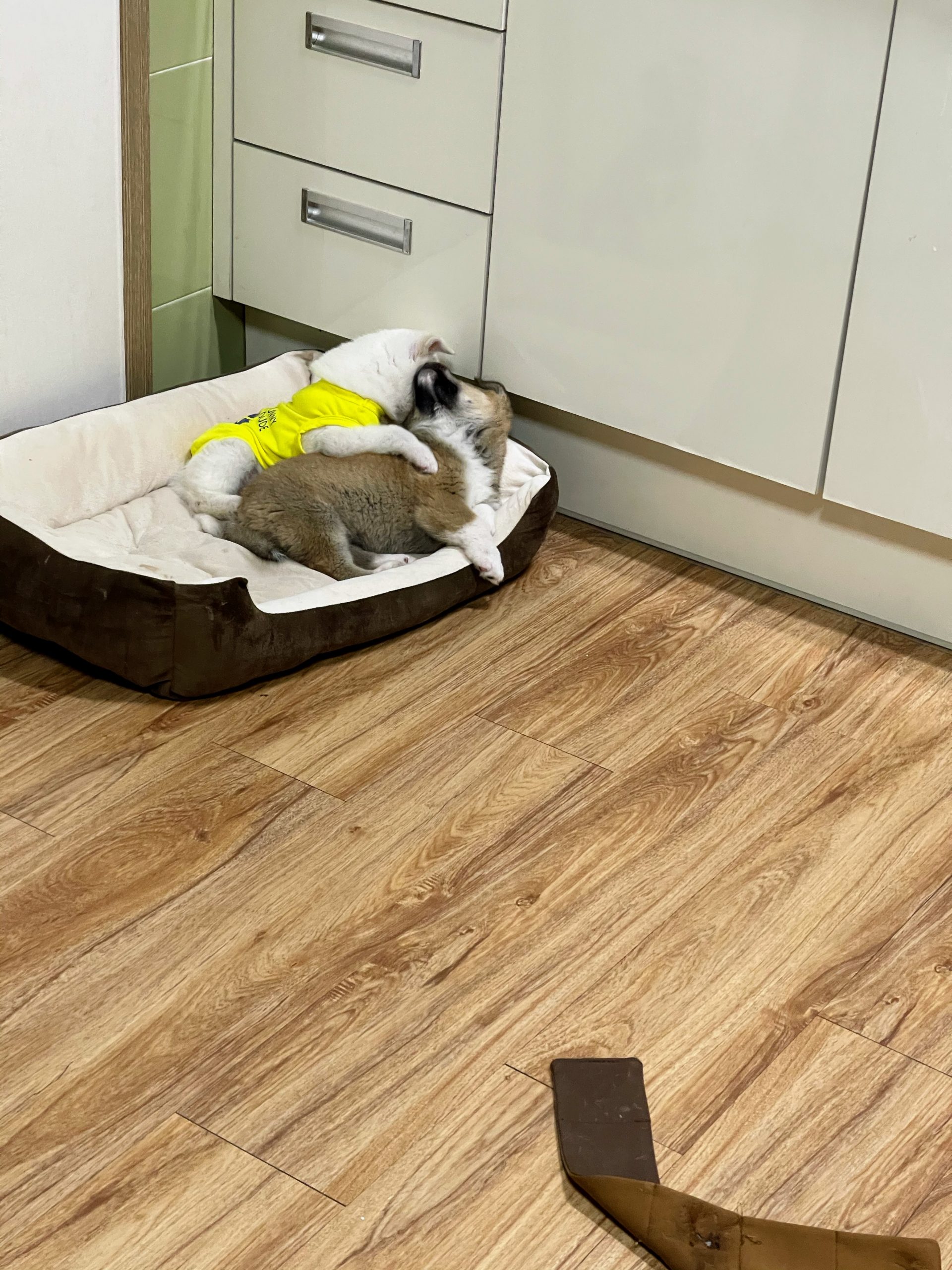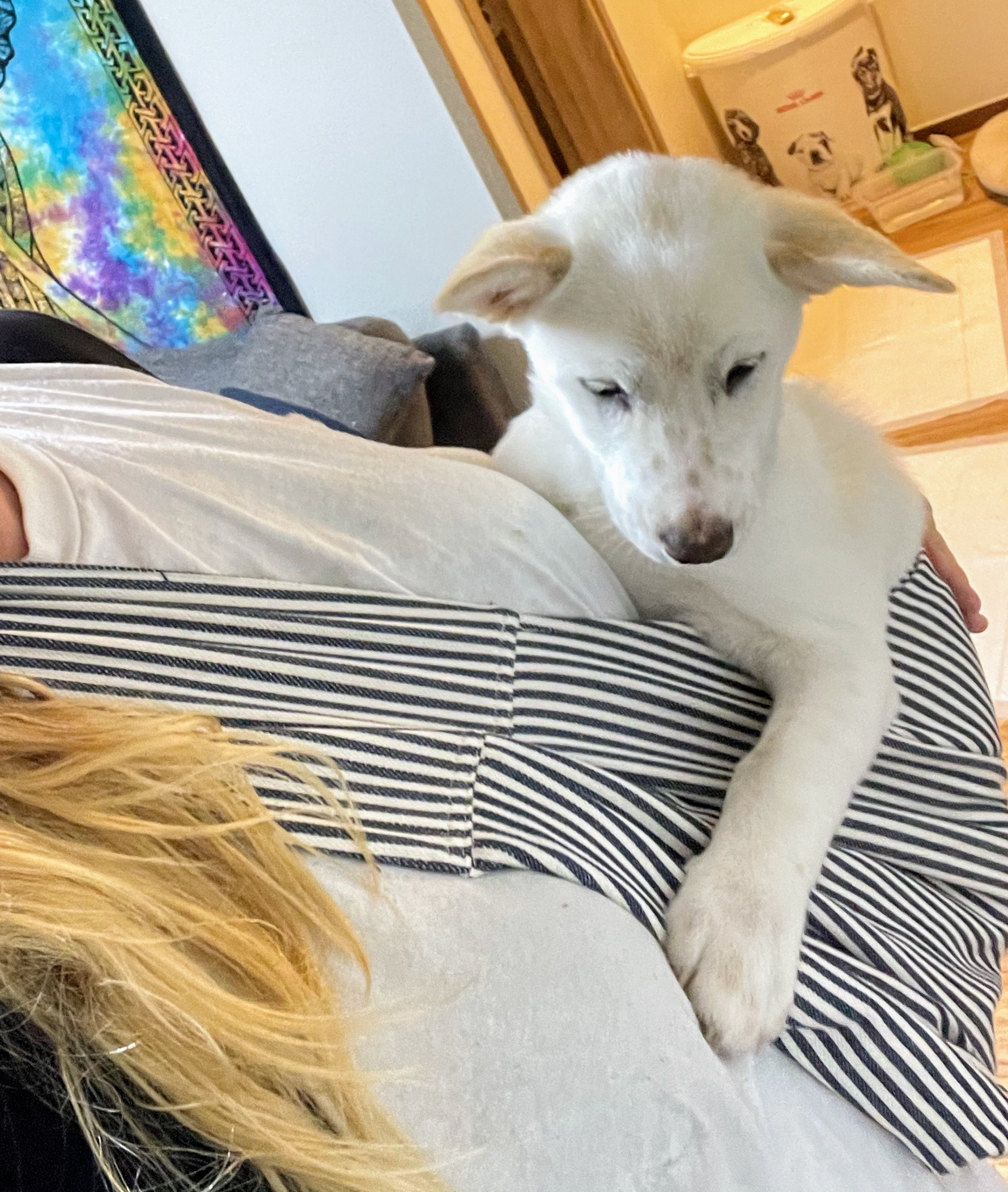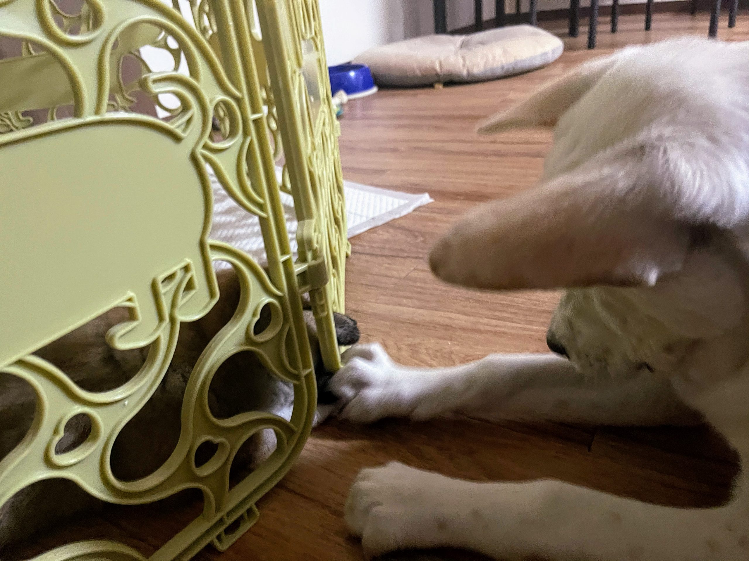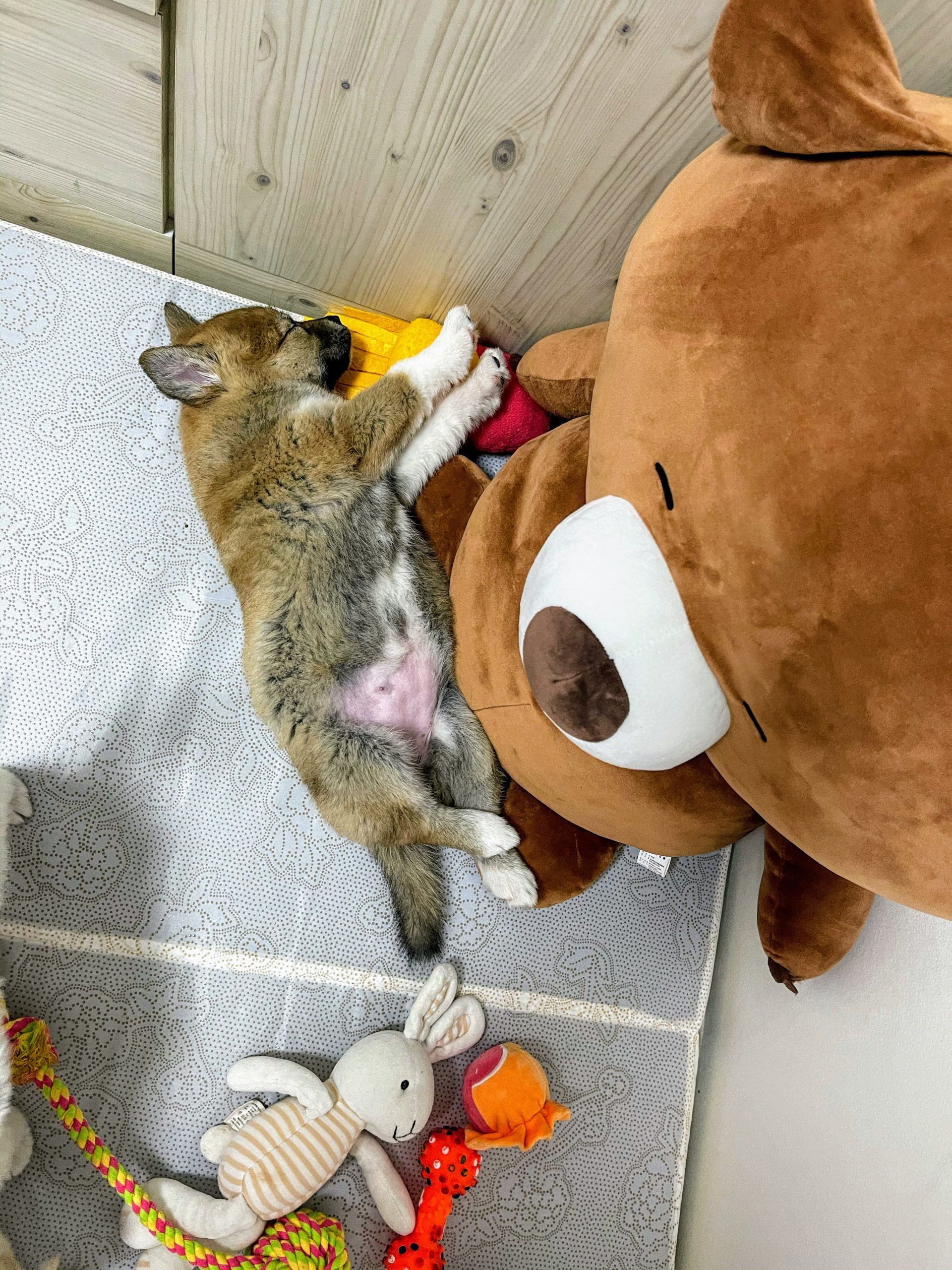 The new hooman parents of Boo (formerly Latte) and Jeju (formerly Pumpkin) were wonderful about sending updates and pictures. It was hurting missing those boys so I hung on every one. Even though it helped finding solace in Soju, they had been the first fosters with me long enough to grow through the phrases of being babies and into teens. I wouldn’t have a chance to keep missing them too much for long, though. Regardless of already being pupped-up, Eun Suk suckered me into taking in two more tiny pups. A brother and a sister. The brother was smaller, gentle and it would turn out had ringworm. The sister was a destructive troublemaker. I didn’t need to be too involved with Saja, though, as was doing great in his new foster home. Thank goodness the woman who was taking care of him had a balcony he could come and go on at his leisure, as he continued to be more of an outdoor dog who didn’t really like being inside. On top of the three with me, Eun Suk also wanted me to take in another litter of five. Three ended up dying from the Parvo they caught in the “shelter” before I could, though. It all was a lot and boy was I grateful for any help I could get. When an expat named Stacie came over to volunteer with taking Soju out for a walk while I was at work, I was grateful. Later her and her boyfriend (who would eventually become my colleague) would even donate a bunch of toys. Things were growing fast and it was welcomed help.