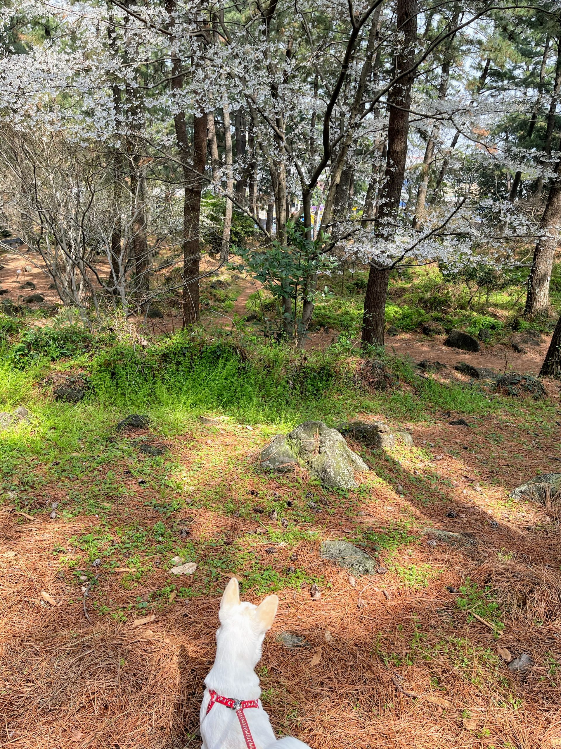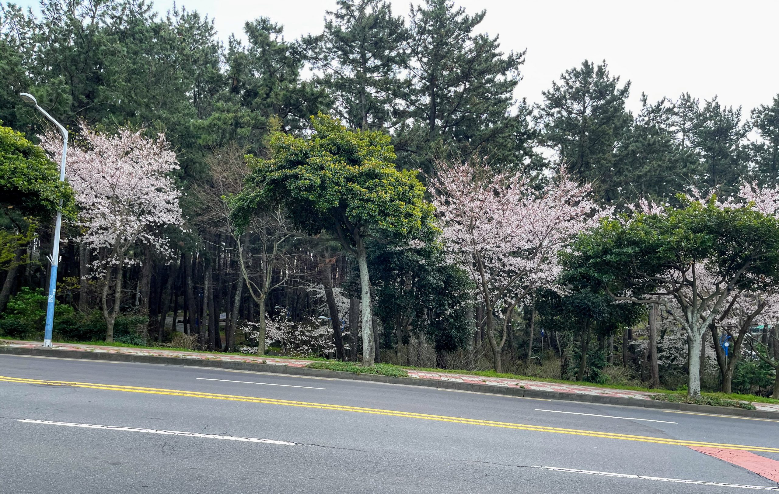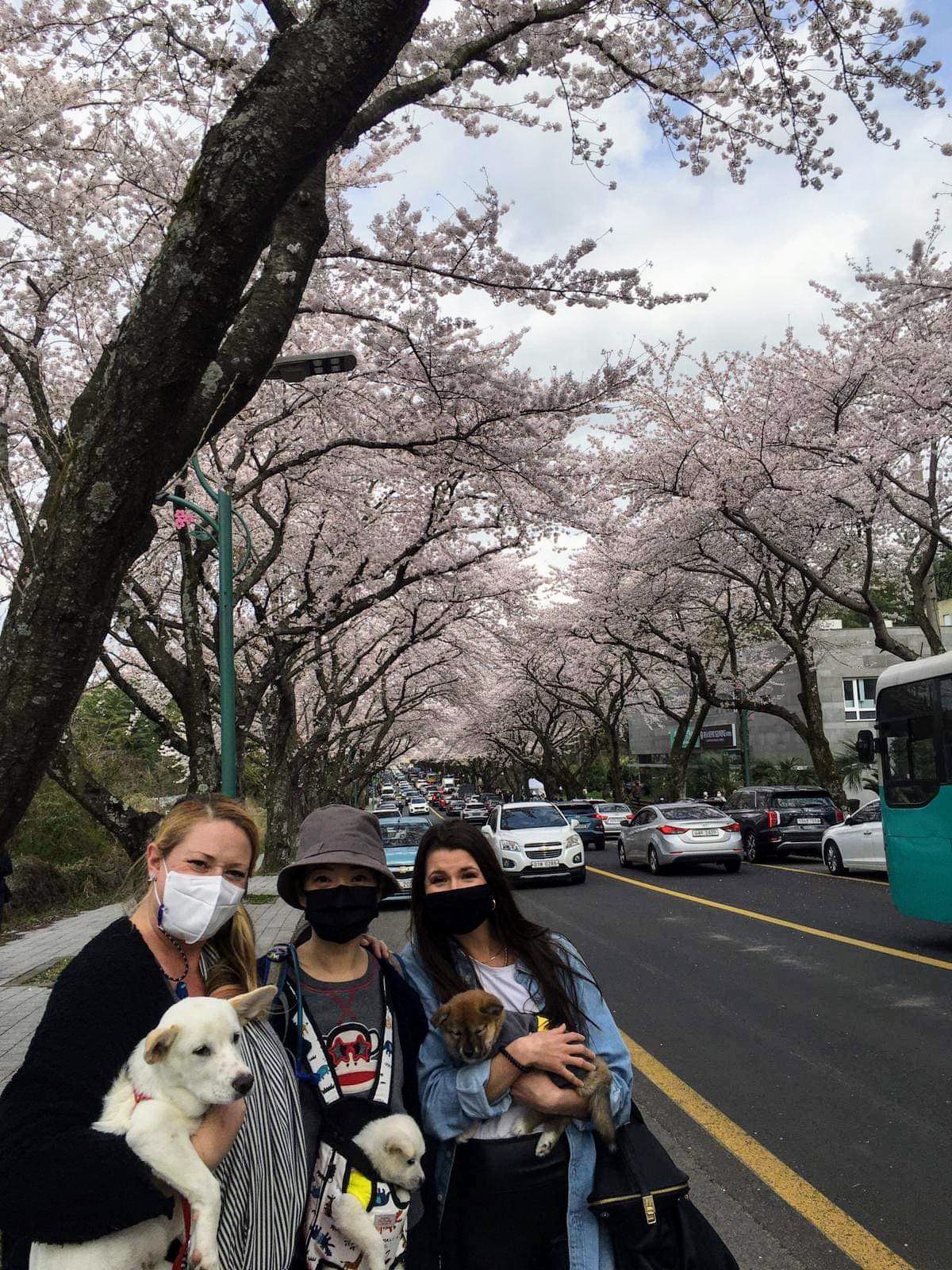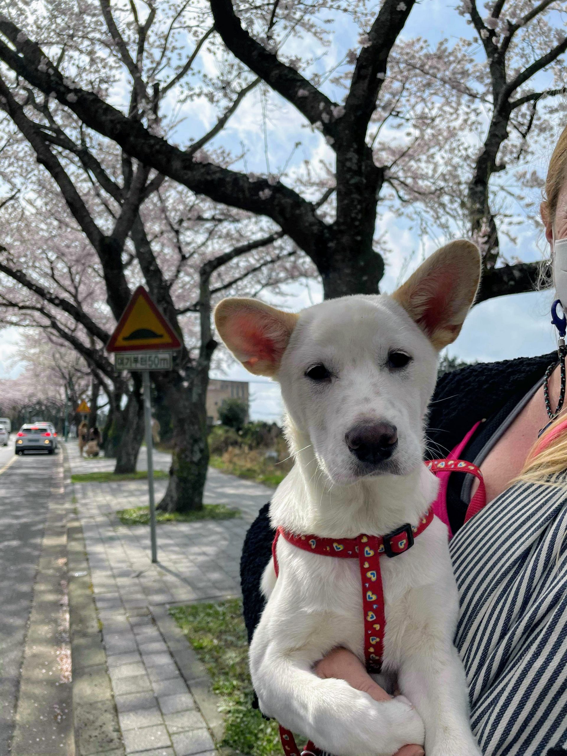 Doggies, doggies, doggies. As much as I didn’t like living in my stuffy, gentrified and family-packed urban neighborhood, I did love how their walks introduced me to art that had been painted along a dry creek bed by me as well as a large park a few small blocks away. The park was blissful but it also reminded me of how gorgeous the nature of the area must have been before it was torn down to put in multi-storied concrete buildings. There was still plenty of beautiful nature not too far away, at least. What was probably the biggest event of the month showcased that when the new little rescue team consisting of me, Emily, Maggie and her husband Ben went to one of the main streets of cherry blossom trees (leading into Jeju National University) to check out budding season with the three foster pups. The energy of the street felt like a holiday and Maggie said she felt like a celebrity with the attention we got for the pups. I got a kick out of that. Not to mention being relieved to not have to wrangle all of them by myself for once. It was great to be able to make it before the short cherry blossom season came to an end. Something that may have come just a bit earlier from a couple days of air quality being as bad as it could possibly get. Gotta thank China for blowing that garbage over.