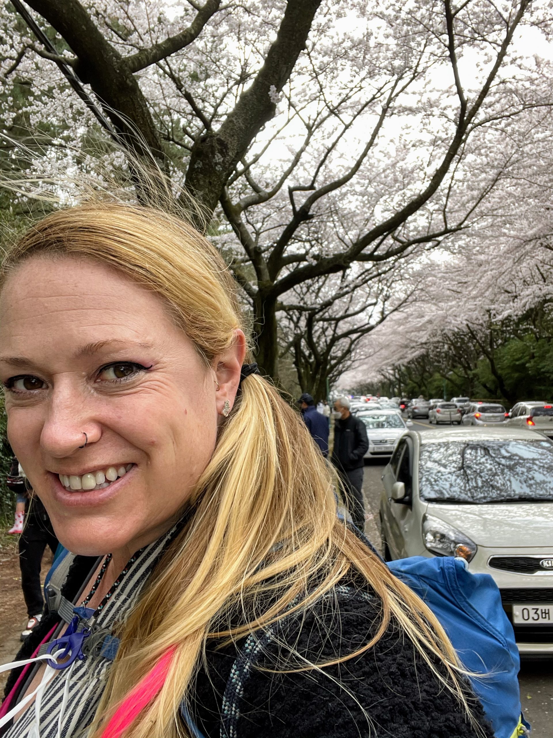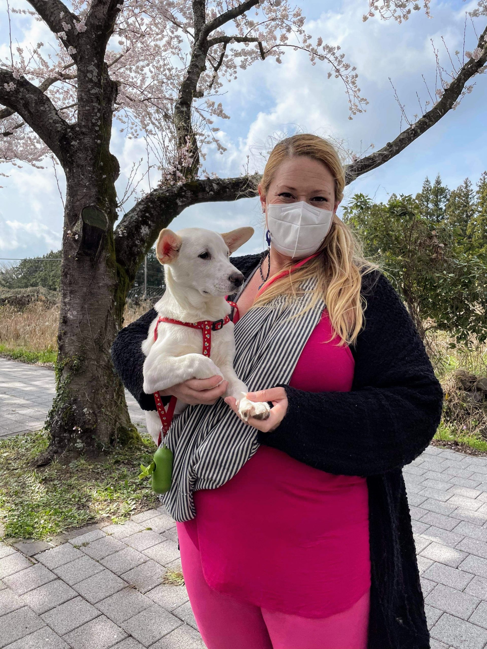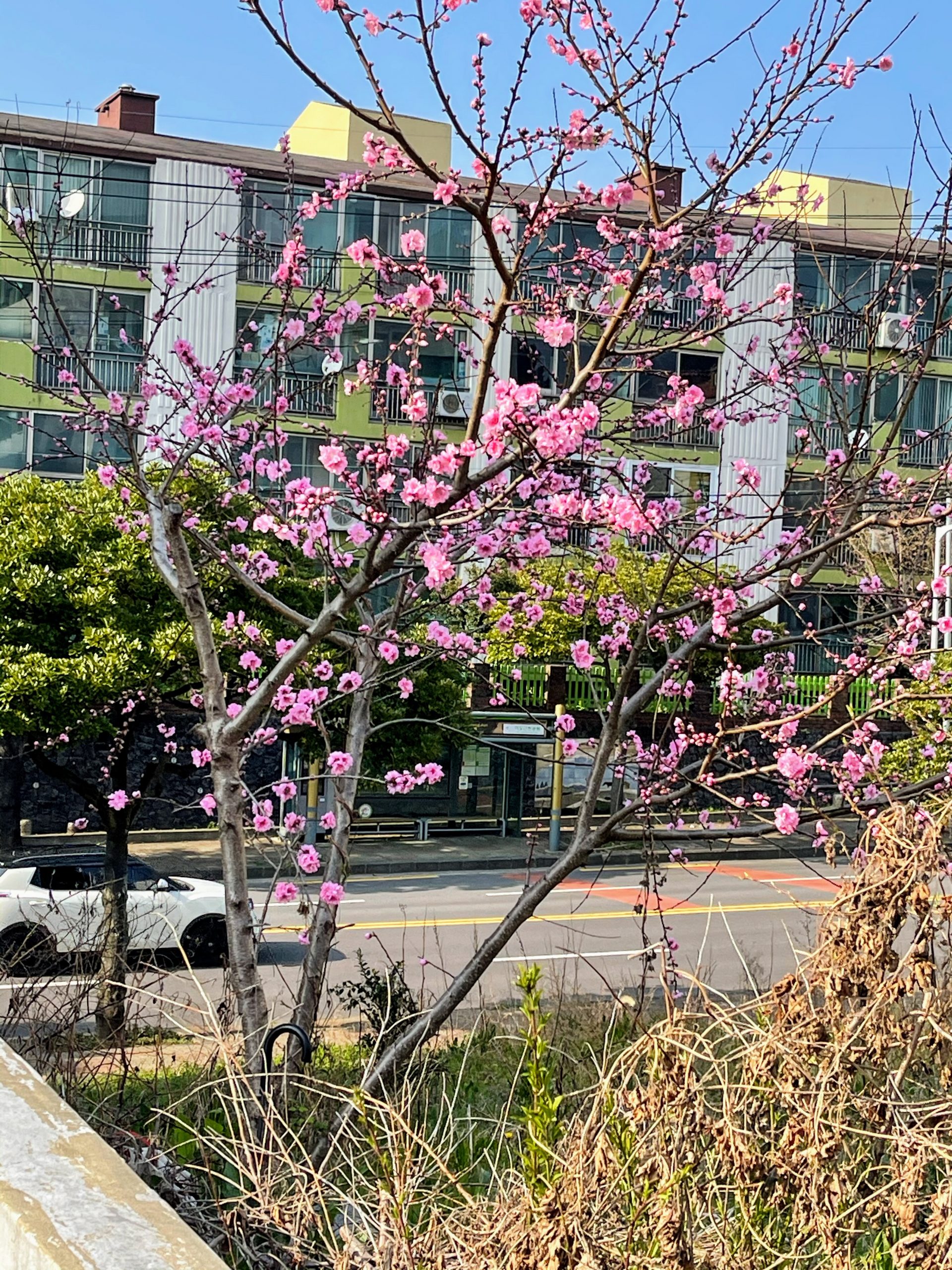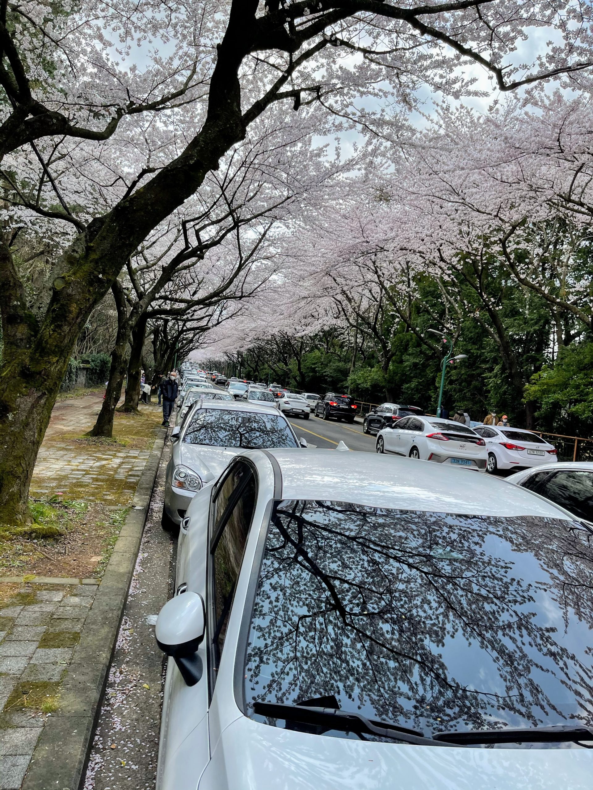 Doggies, doggies, doggies. As much as I didn’t like living in my stuffy, gentrified and family-packed urban neighborhood, I did love how their walks introduced me to art that had been painted along a dry creek bed by me as well as a large park a few small blocks away. The park was blissful but it also reminded me of how gorgeous the nature of the area must have been before it was torn down to put in multi-storied concrete buildings. There was still plenty of beautiful nature not too far away, at least. What was probably the biggest event of the month showcased that when the new little rescue team consisting of me, Emily, Maggie and her husband Ben went to one of the main streets of cherry blossom trees (leading into Jeju National University) to check out budding season with the three foster pups. The energy of the street felt like a holiday and Maggie said she felt like a celebrity with the attention we got for the pups. I got a kick out of that. Not to mention being relieved to not have to wrangle all of them by myself for once. It was great to be able to make it before the short cherry blossom season came to an end. Something that may have come just a bit earlier from a couple days of air quality being as bad as it could possibly get. Gotta thank China for blowing that garbage over.