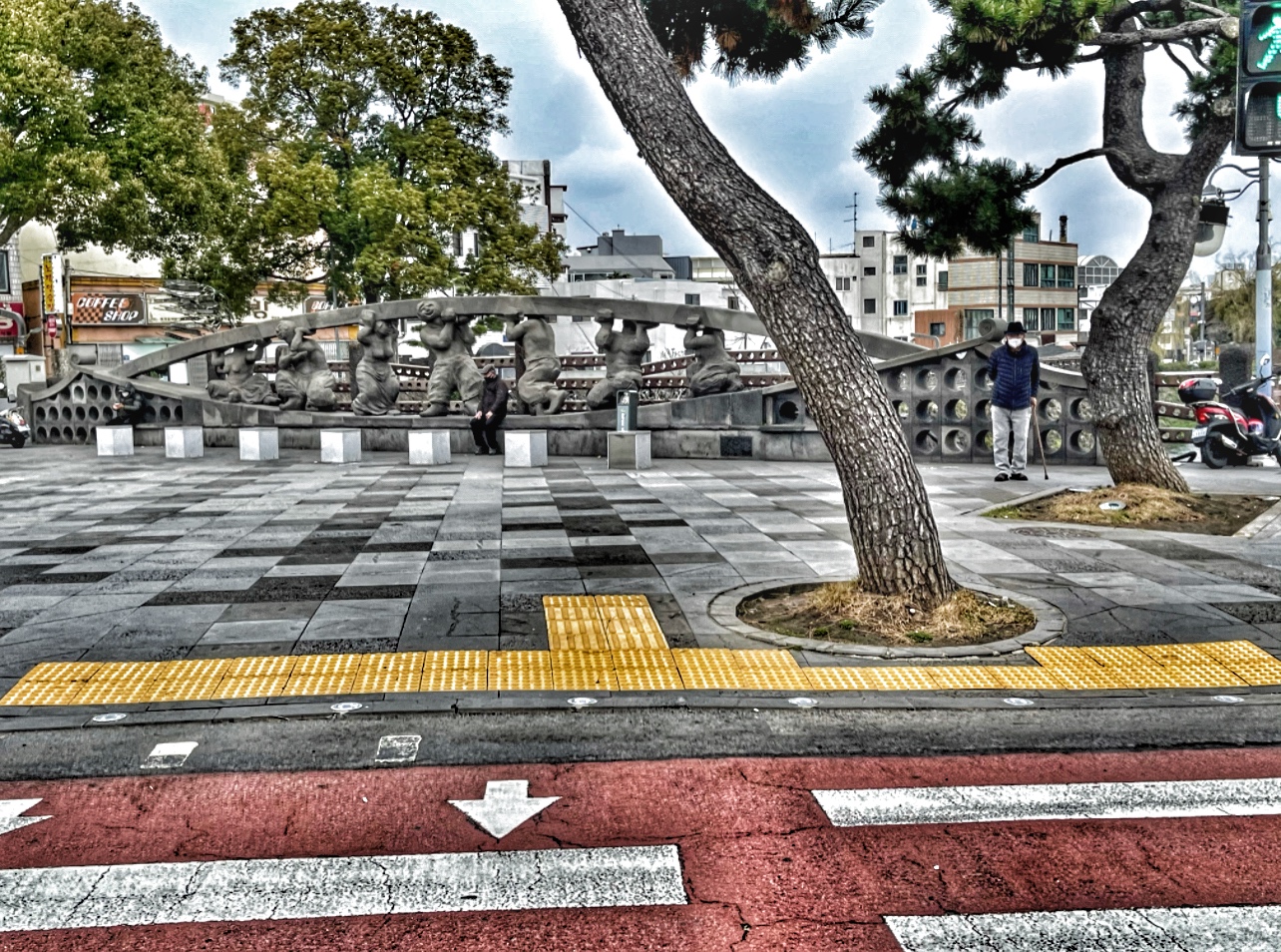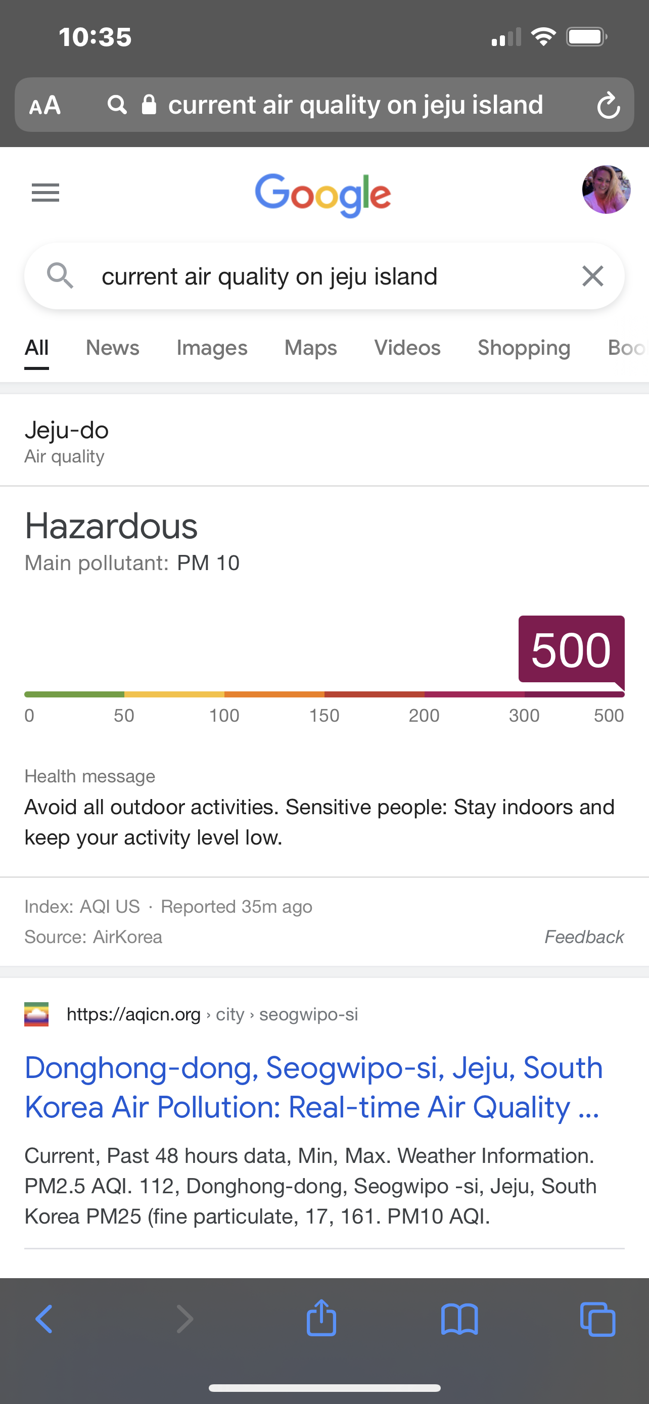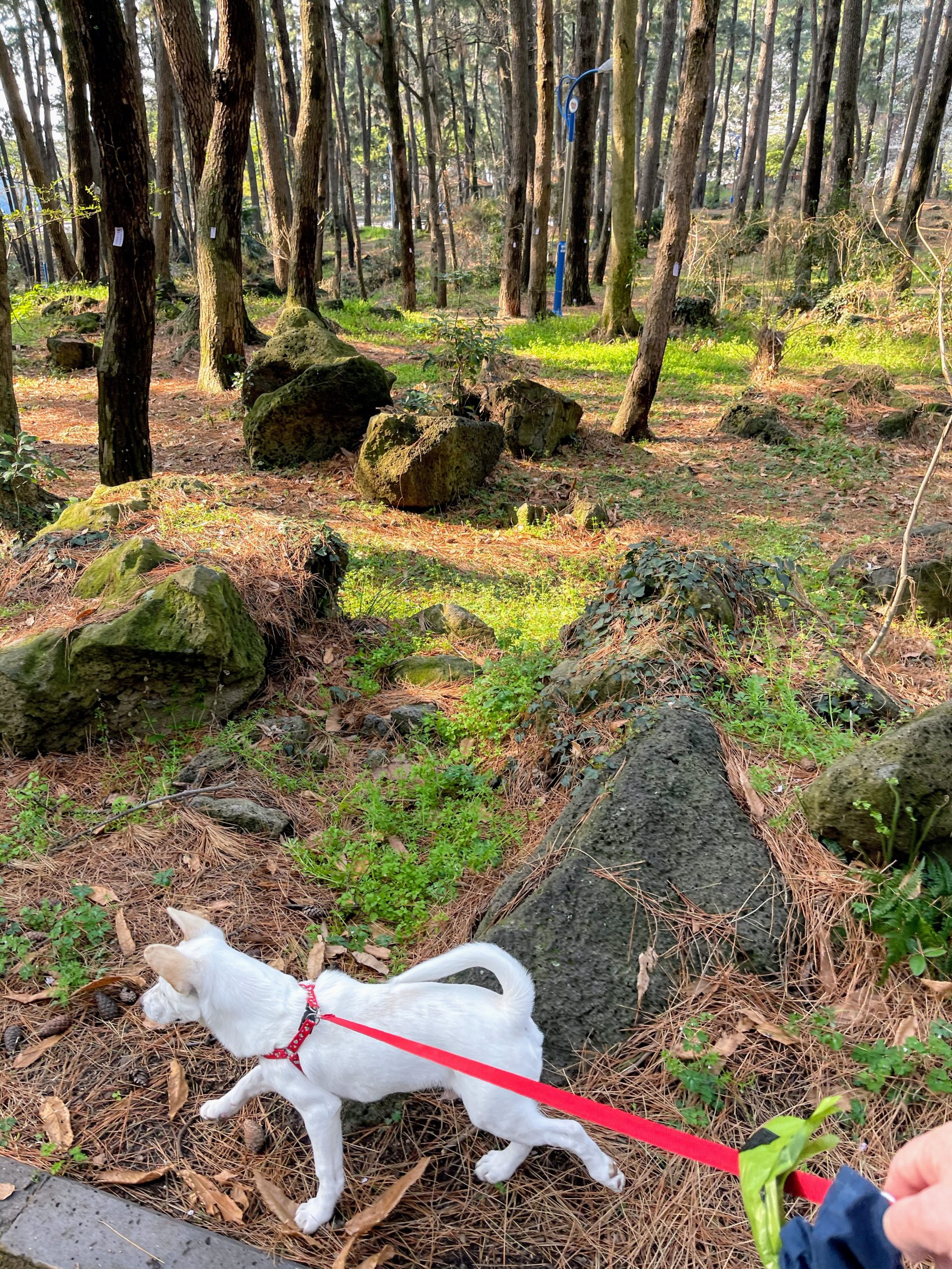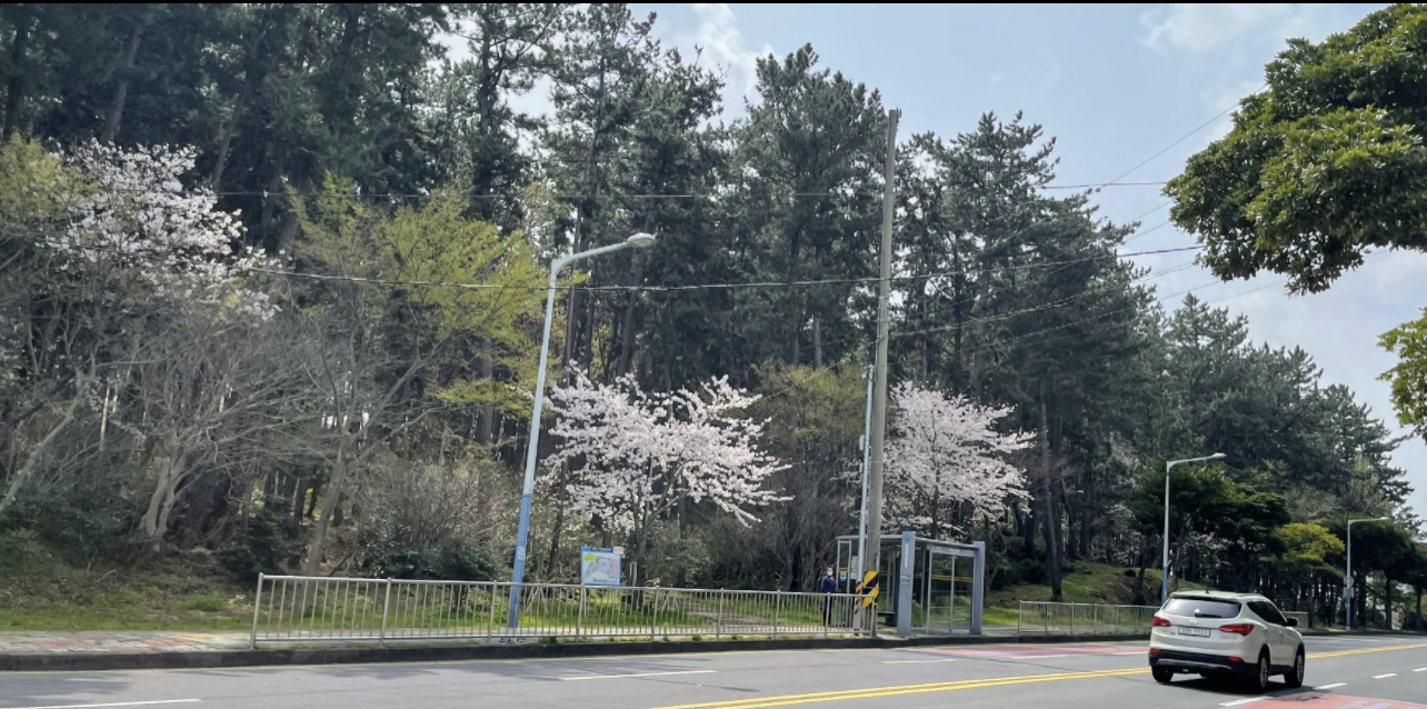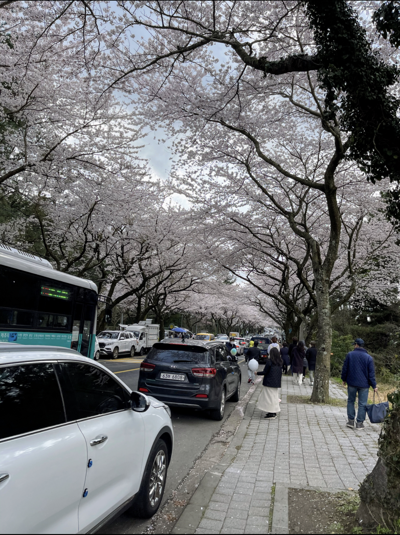 Doggies, doggies, doggies. As much as I didn’t like living in my stuffy, gentrified and family-packed urban neighborhood, I did love how their walks introduced me to art that had been painted along a dry creek bed by me as well as a large park a few small blocks away. The park was blissful but it also reminded me of how gorgeous the nature of the area must have been before it was torn down to put in multi-storied concrete buildings. There was still plenty of beautiful nature not too far away, at least. What was probably the biggest event of the month showcased that when the new little rescue team consisting of me, Emily, Maggie and her husband Ben went to one of the main streets of cherry blossom trees (leading into Jeju National University) to check out budding season with the three foster pups. The energy of the street felt like a holiday and Maggie said she felt like a celebrity with the attention we got for the pups. I got a kick out of that. Not to mention being relieved to not have to wrangle all of them by myself for once. It was great to be able to make it before the short cherry blossom season came to an end. Something that may have come just a bit earlier from a couple days of air quality being as bad as it could possibly get. Gotta thank China for blowing that garbage over.